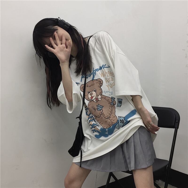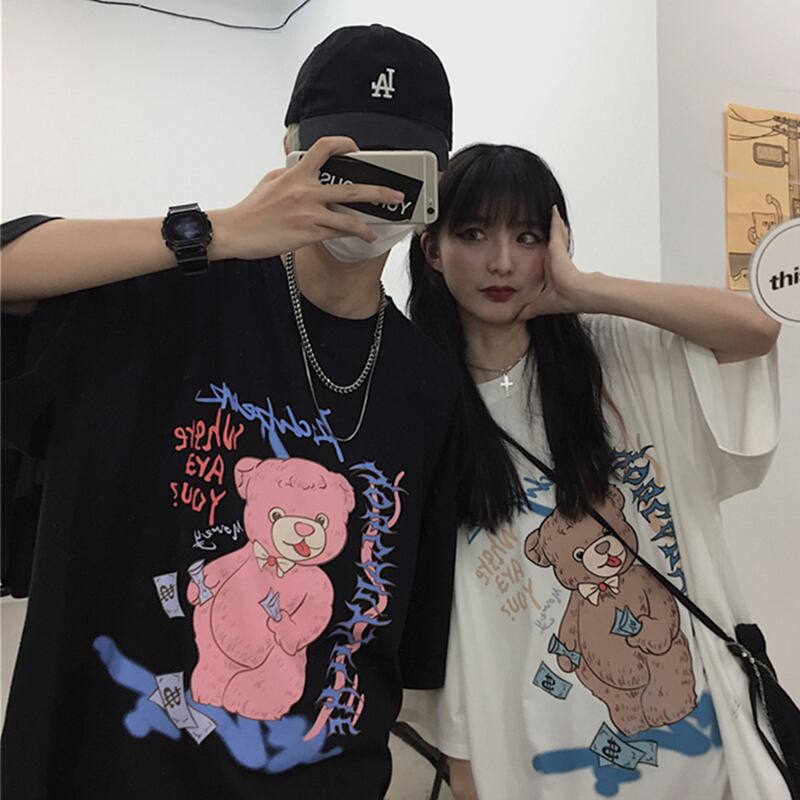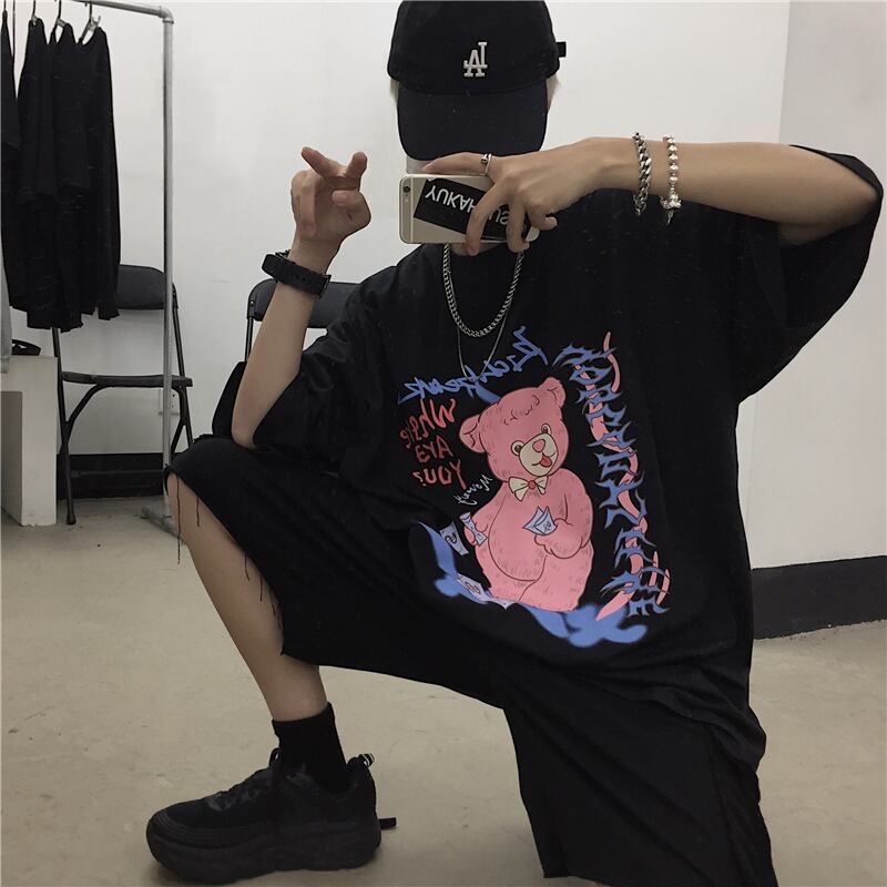 2020年夏の新バージョンinsスーパーファイヤーグラフィティベアプリント半袖トップスルーズ半袖Tシャツ男性と女性 Brother_is_Style9127658