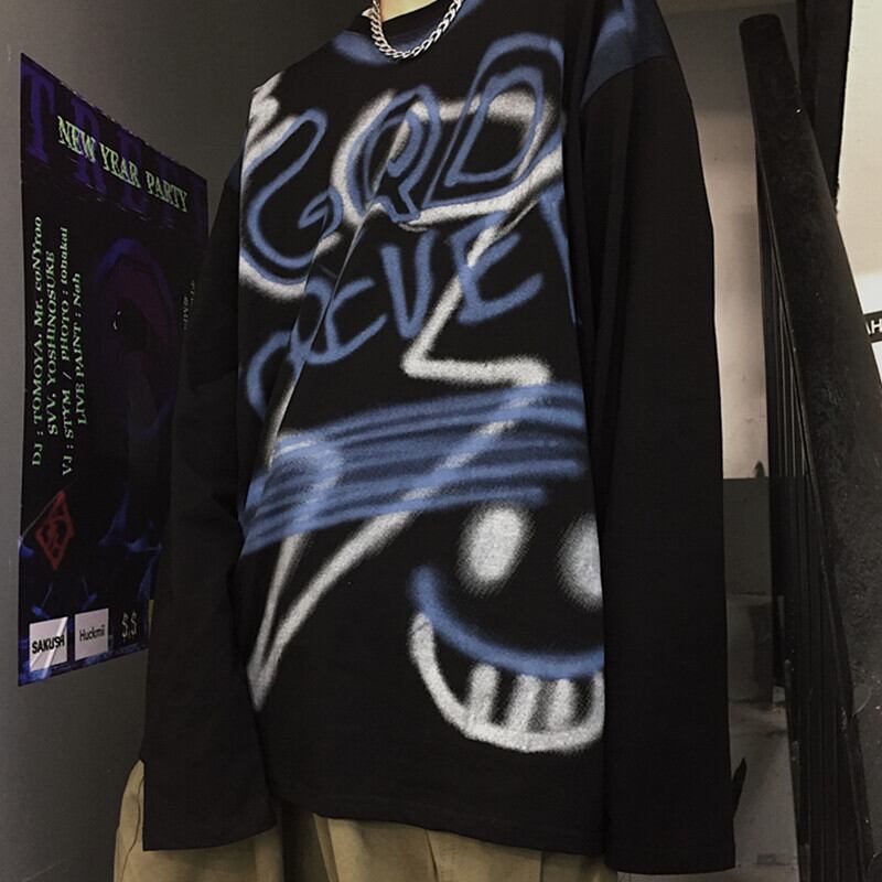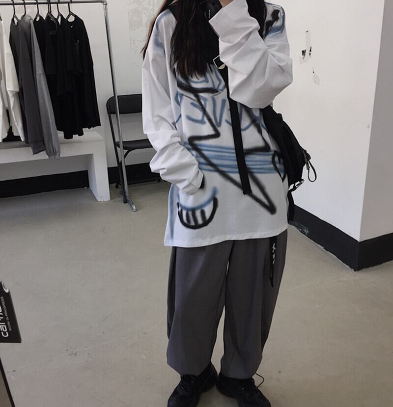 2020年秋のinsストリートグラフィティプリントの新しいバージョンの長袖Tシャツルーズボトムスシャツの男性と女性 Brother_is_Style71611971072