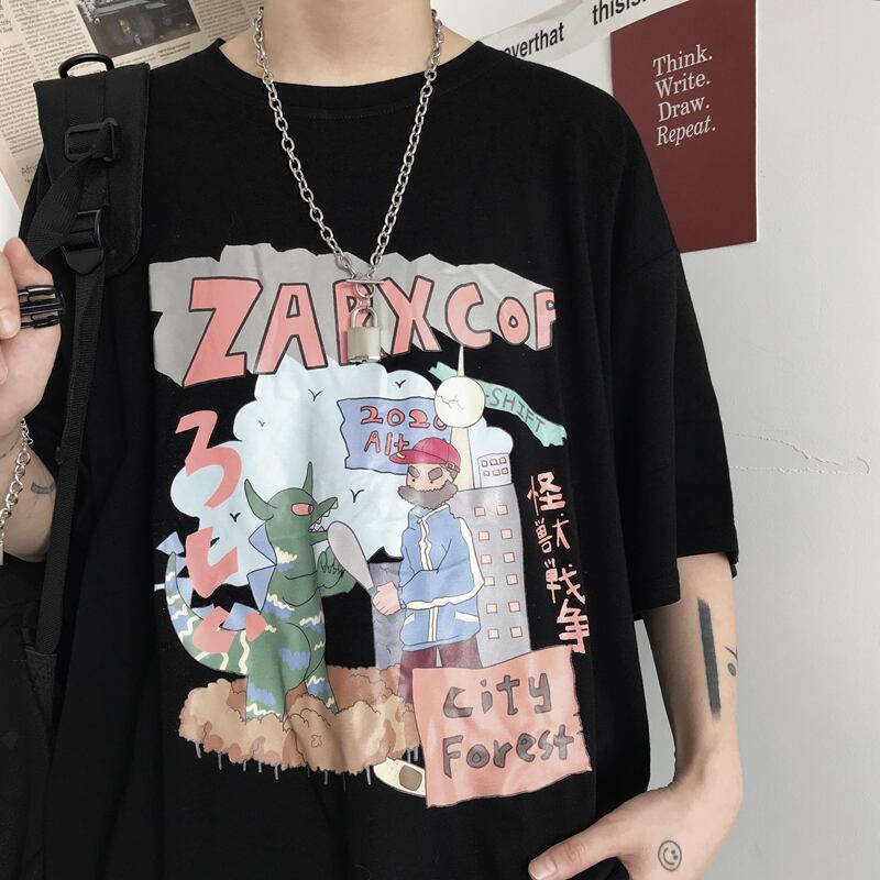 2020新しい夏バージョンins ese漫画コミック半袖トップス緩い黒半袖Tシャツの男性と女性 Brother_is_Style5266654
