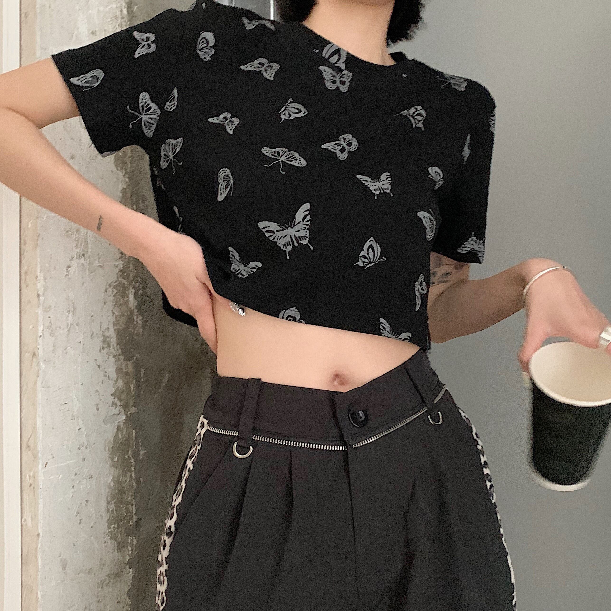半袖の女性の夏の2020年の新しいバージョンins香港スタイルバタフライクロップトップ学生緩いショートtシャツトレンド Brother_is_Style6755490