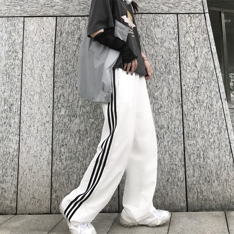パンツ女性版insレトロ3バースポーツカジュアルパンツ学生ズボン緩いハイウエストストレートワイドレッグパンツトレンド Brother_is_Style8634693