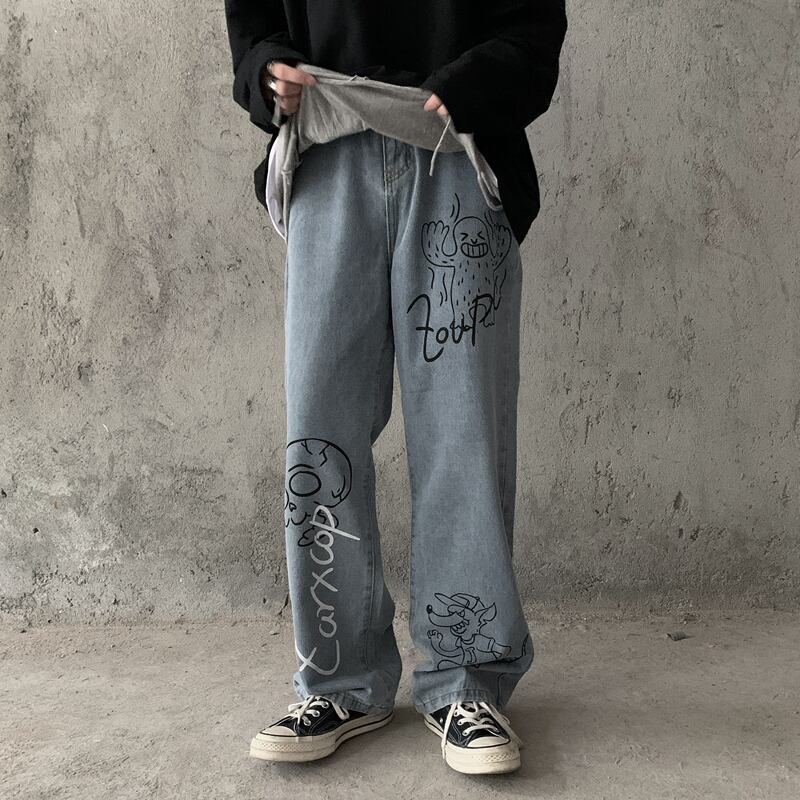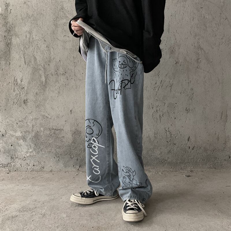 パンツレディース2020新バージョンインス漫画プリントストレートワイドレッグパンツゆったりハイウエストスリムジーンズトレンド Brother_is_Style41415376603