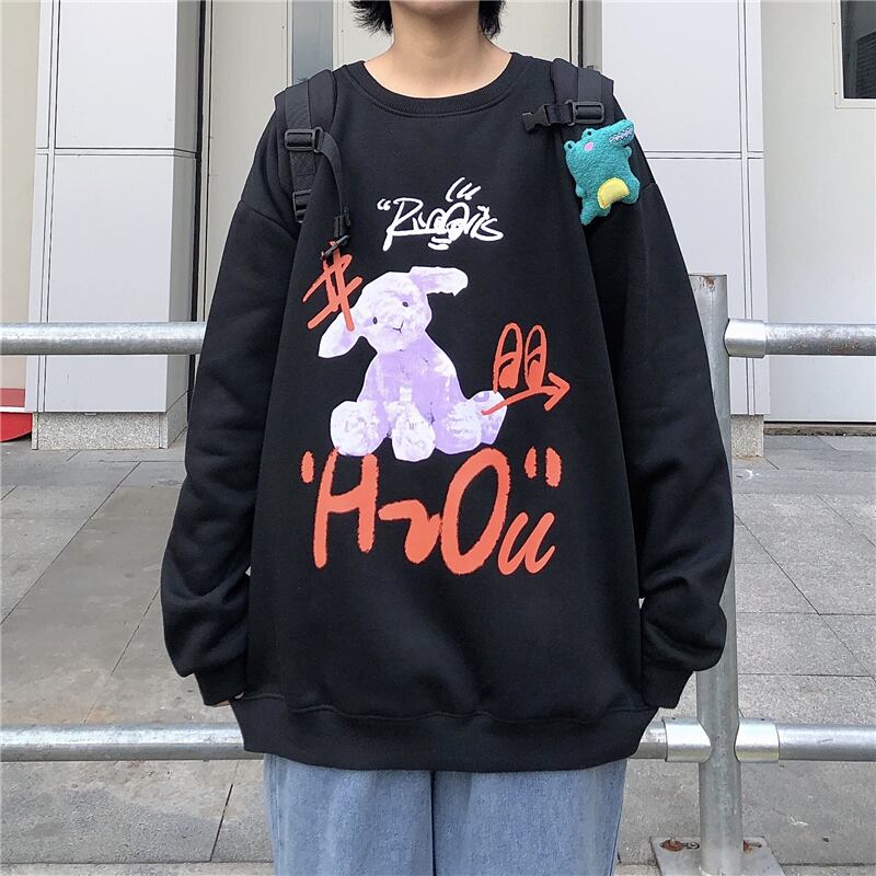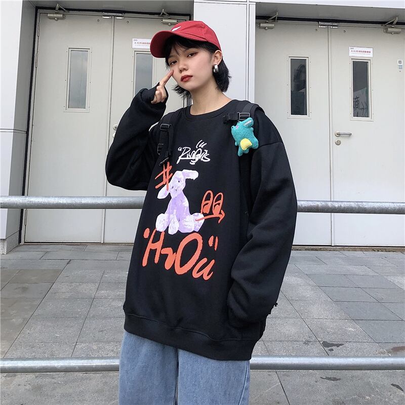 2020年秋冬新作ins落書き漫画プルオーバートップ学生緩いプラスベルベットフードレスセーター女性 Brother_is_Style19636001974
