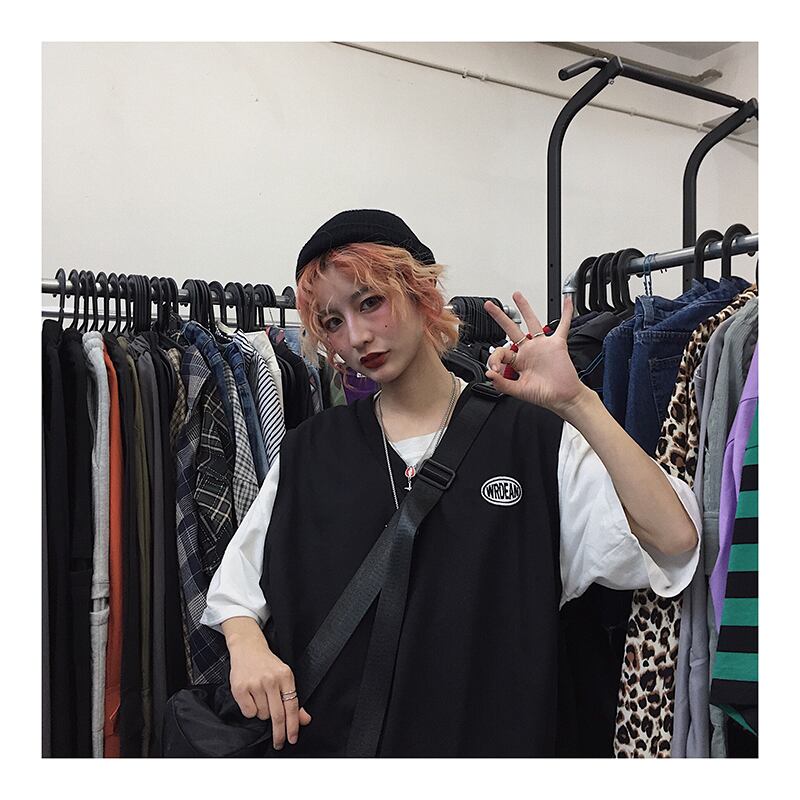 サマースタイルブラックルーズVネックノースリーブトップス かわいい 夏物 Brother_is_Style82375379256
