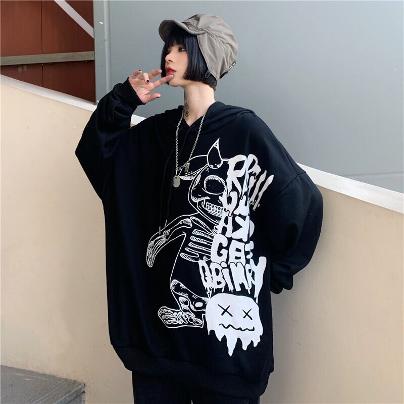 フード付きセーター女性秋/冬2020新バージョンins原宿スタイル漫画黒ルーズbfプラスベルベットジャケット潮 Brother_is_Style1439455143