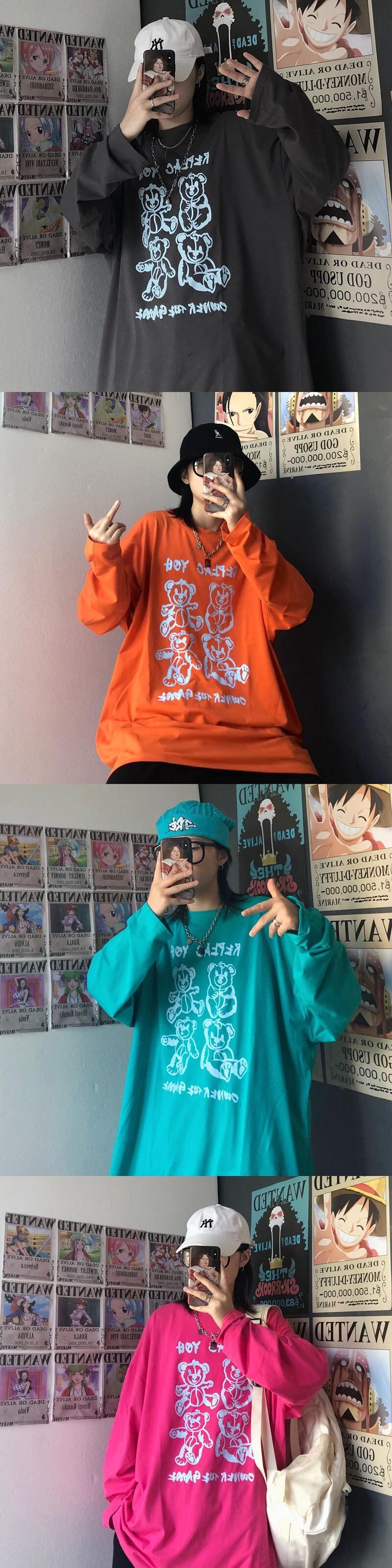 長袖Tシャツの女性の2020年秋の新バージョンins原宿スタイルの漫画の印刷緩いラウンドネック底入れトップの潮 Brother_is_Style51725456454