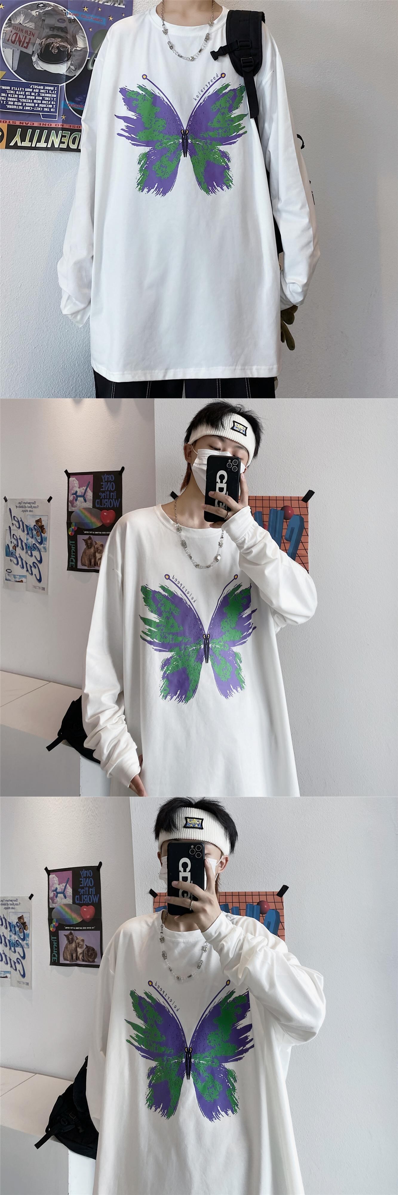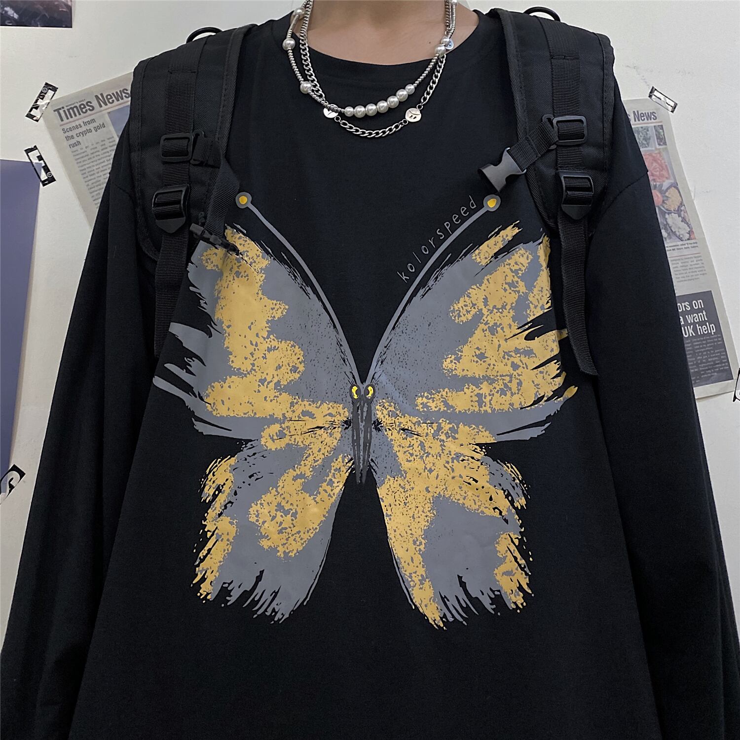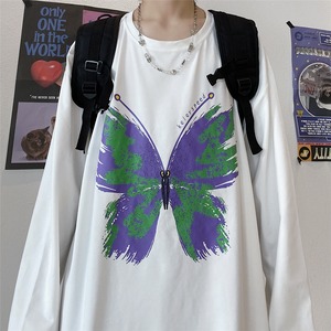 2020新しい秋バージョンのinsレトロバタフライプリント長袖Tシャツ緩い白の学生のシャツの女性のトレンド Brother_is_Style93269301456