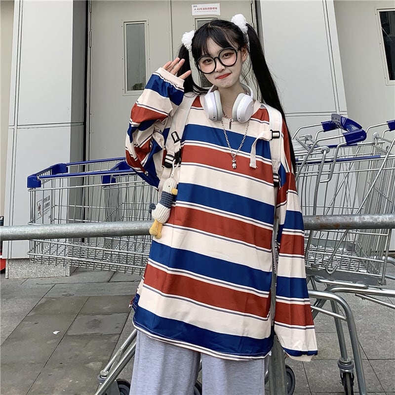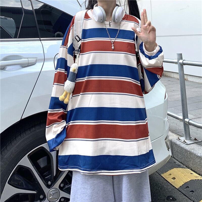 2020年秋新作女装ins原宿ポートスタイルストライプトップスゆったり生長袖Tシャツトレンド Brother_is_Style88636899702
