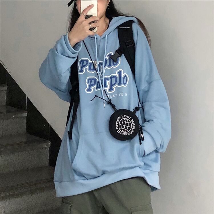 プリントフードセーター ルーズブルーベルベットジャケット オータム 秋物 ウィンター 冬物 Brother_is_Style3272943301