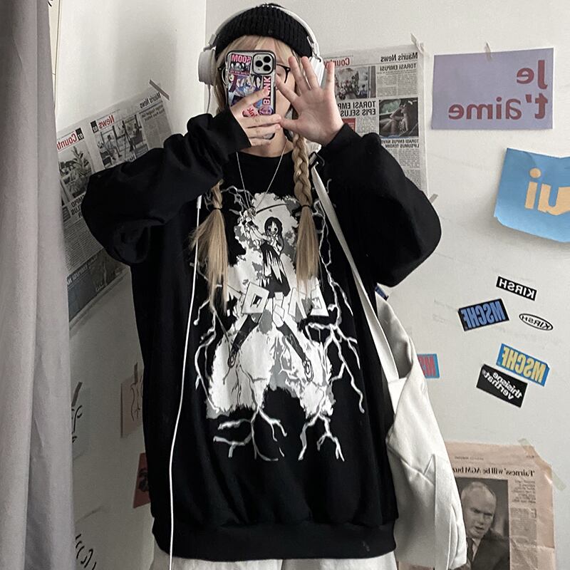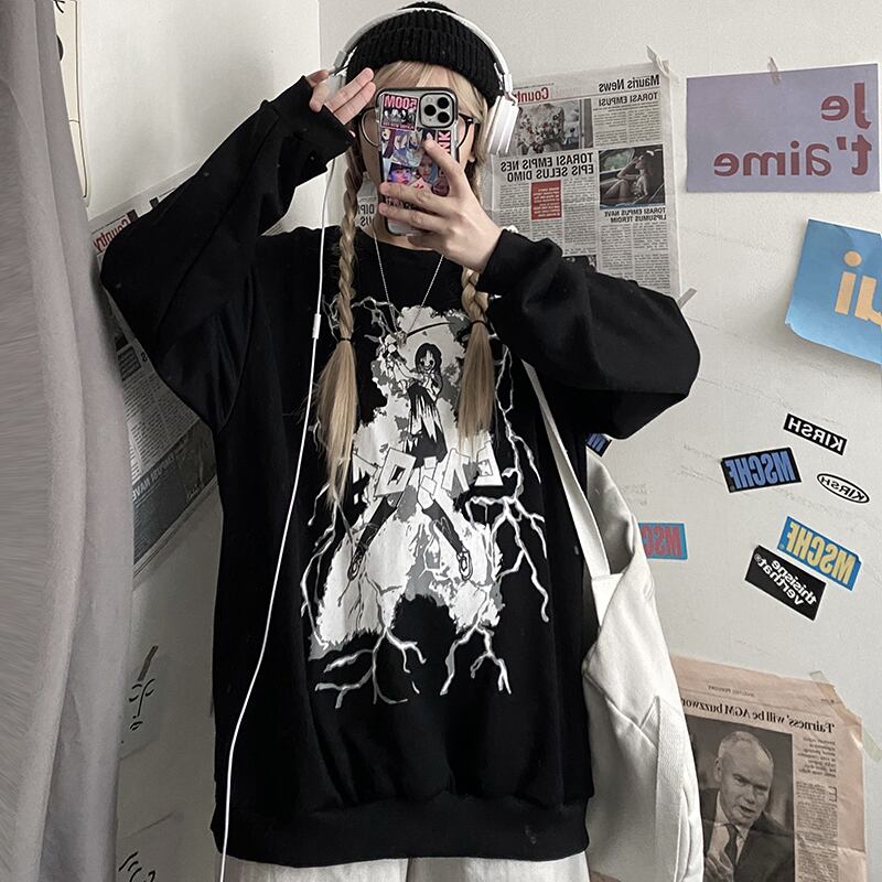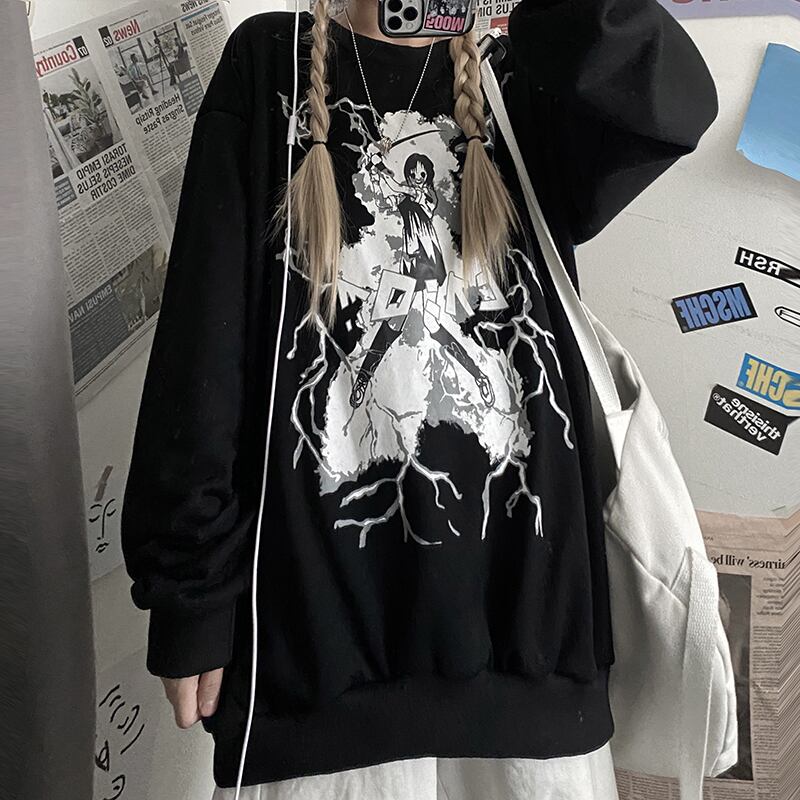 Hoodlessセーター女性2020年秋の新バージョンins原宿スタイルの印刷bfルーズブラックプルオーバートップトレンド Brother_is_Style4769534261