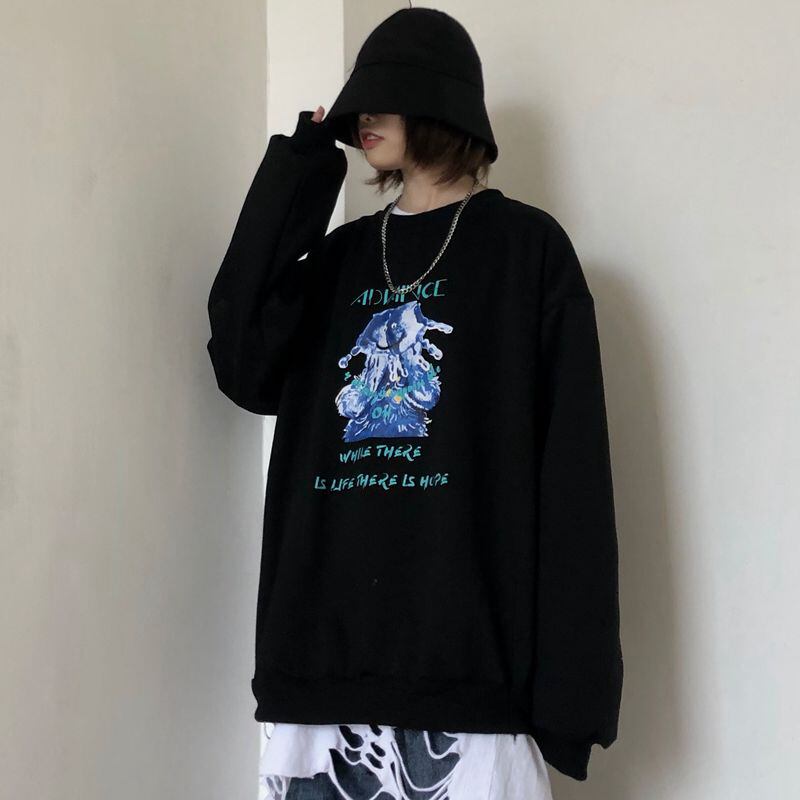 2020年秋と冬のins漫画長袖シャツ緩い、ベルベットのフードレスのセーター女子学生ジャケットの新しいバージョン Brother_is_Style90646492091