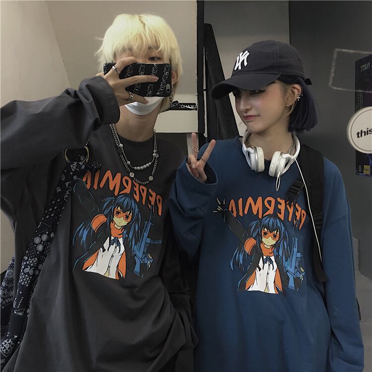 2020年秋の新バージョンのins cartoonアニメ印刷ベースコートルーズラウンドネック長袖Tシャツの男性と女性 Brother_is_Style55629720074