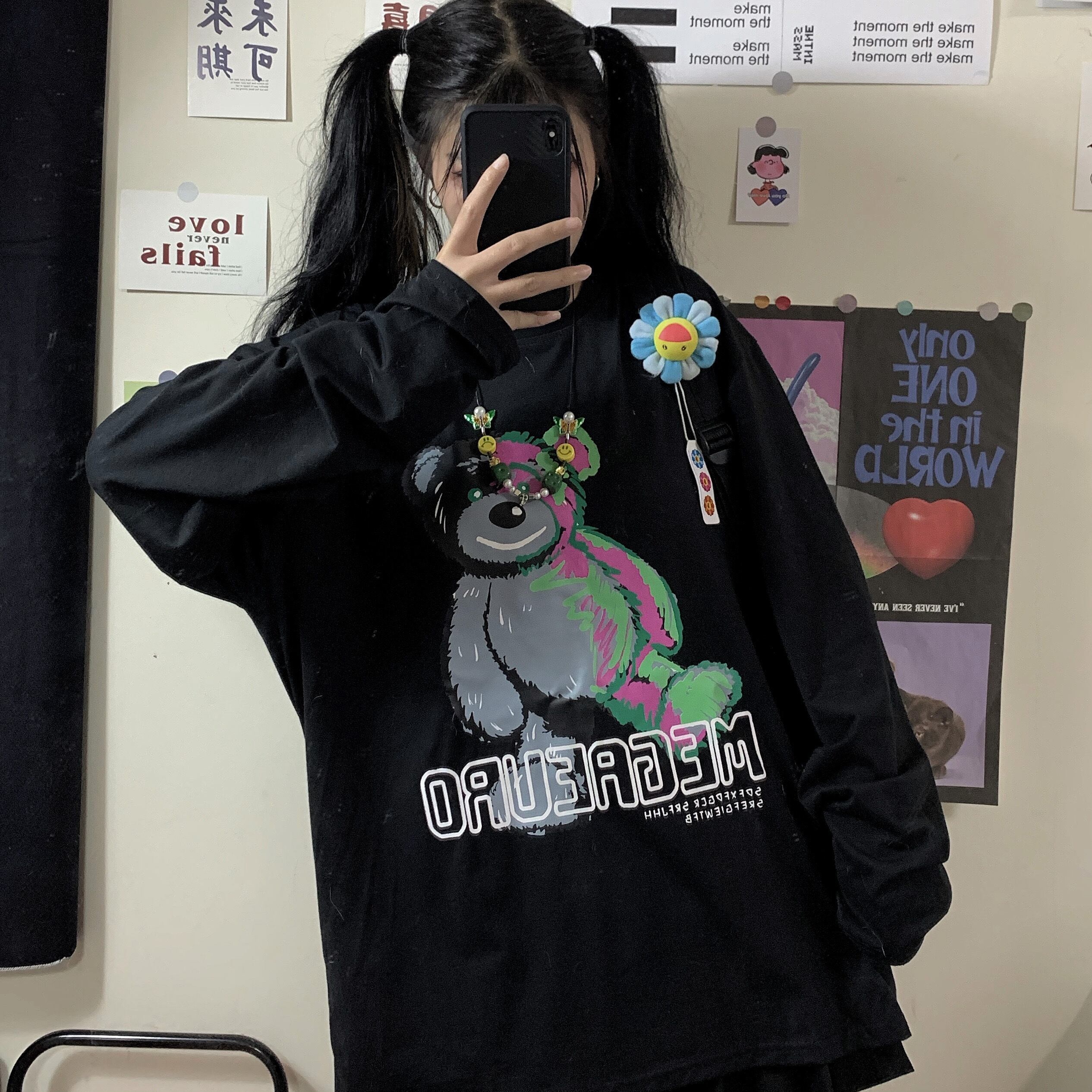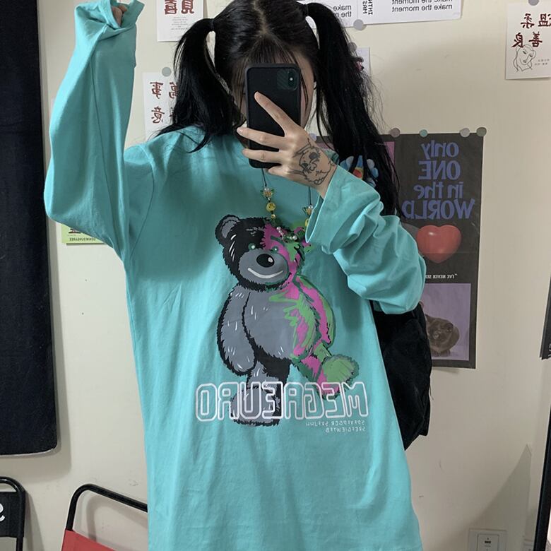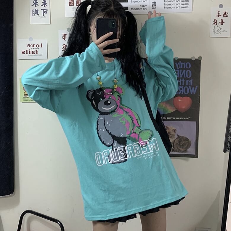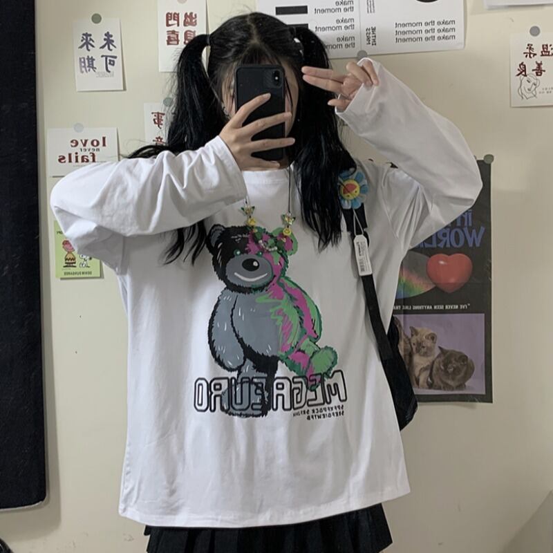 白いTシャツの女性2020秋の新バージョンins原宿スタイルの漫画のクマ緩い長袖トップ学生のトレンド Brother_is_Style92703237323