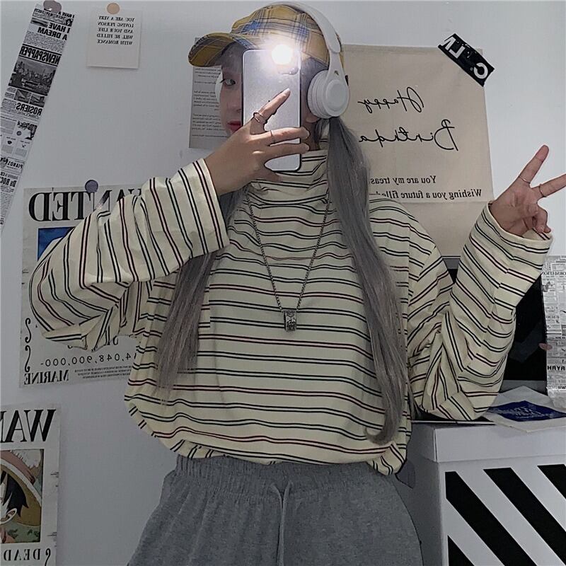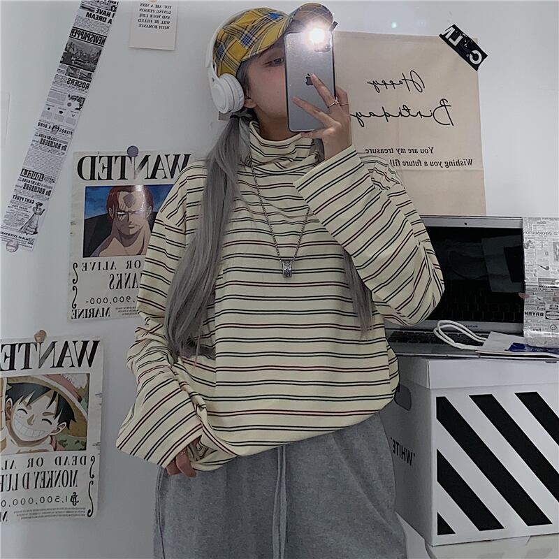 レディースボトミングシャツ2020新秋バージョン原宿スタイルeseストライプ長袖Tシャツルーズトップトレンド Brother_is_Style17660895679