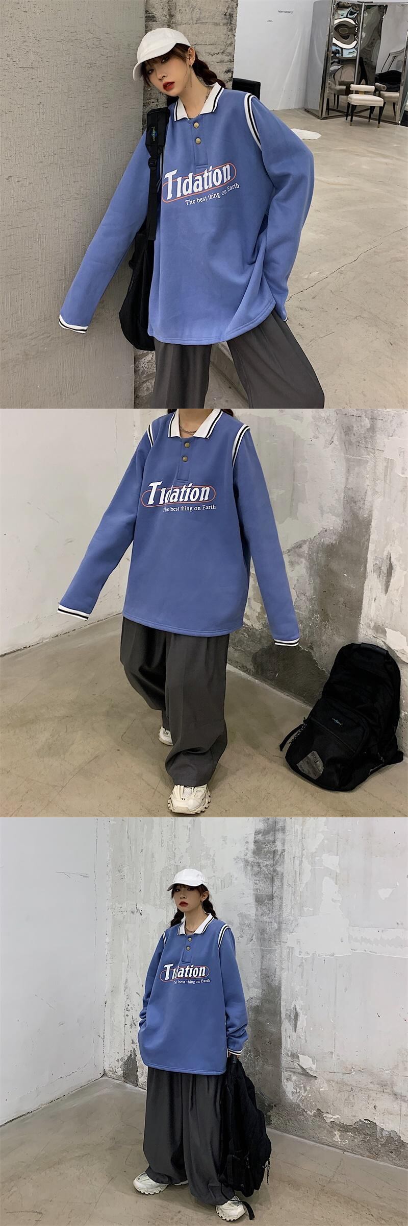 2020年秋冬の新バージョンのインコントラストステッチポロカラートップルーズプラスベルベットプルオーバーセーター女性トレンド Brother_is_Style48956316496