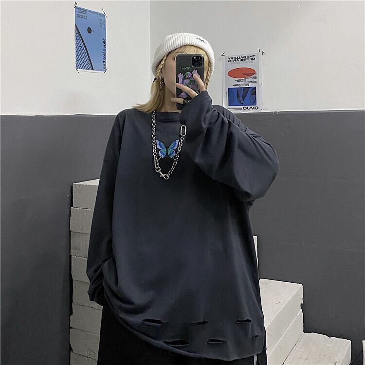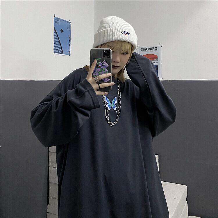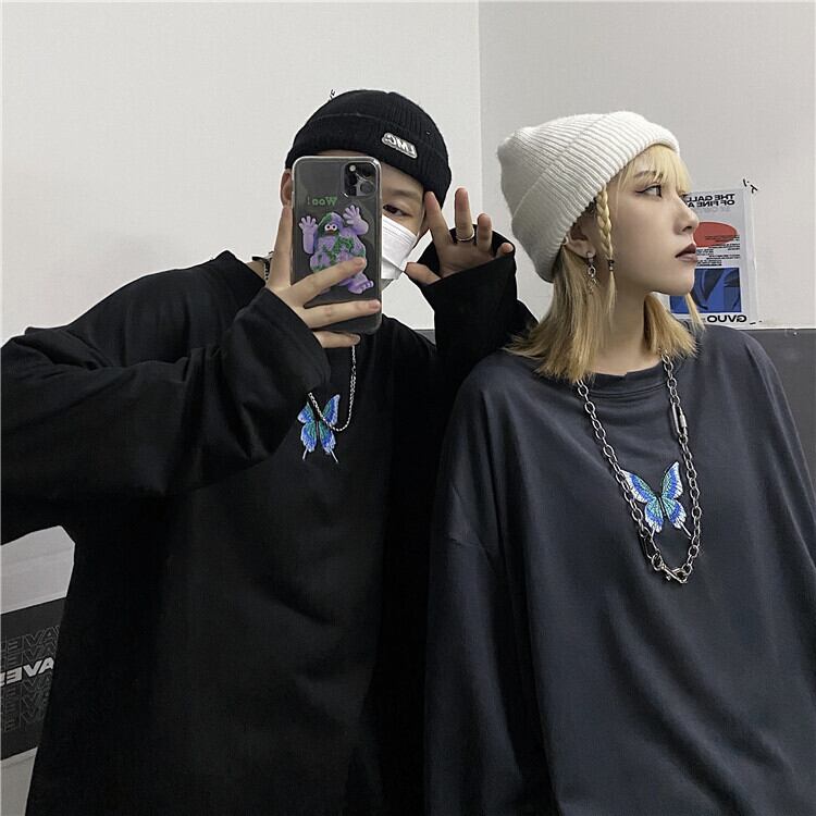 2020年秋新バージョンのインダーク刺繍バタフライ長袖Tシャツルーズボトミングホールトップメンズ&レディーストレンド Brother_is_Style2569300144