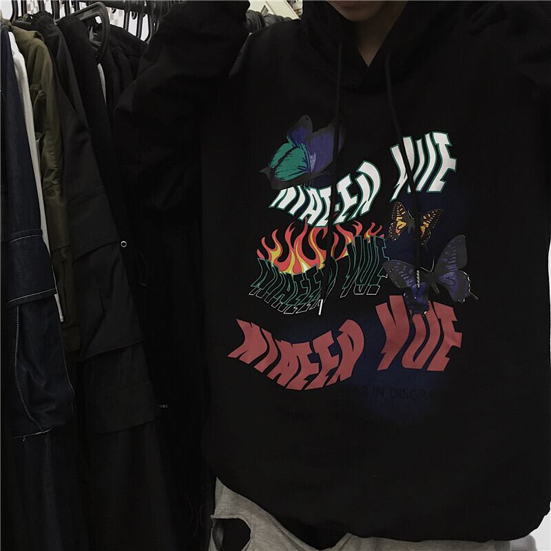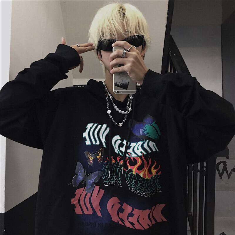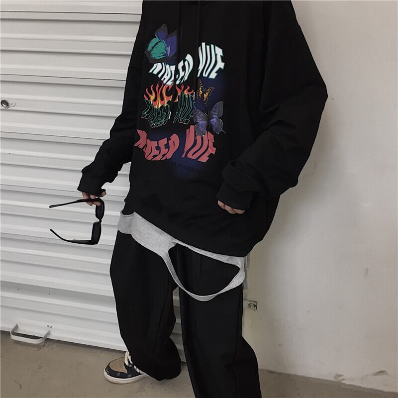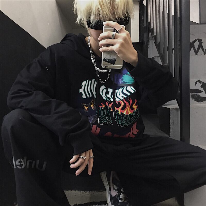 フード付きセーター女性2020年秋冬新バージョンインストリートパーソナリティグラフィティブラックルーズプラスベルベットジャケットタイド Brother_is_Style91459830264