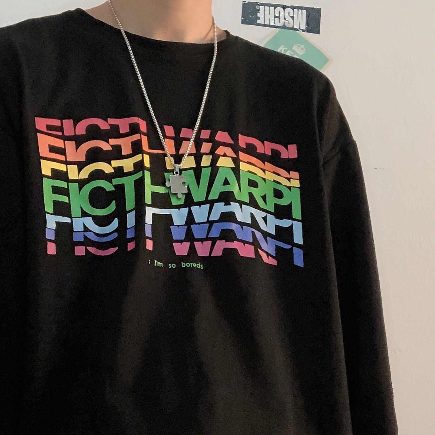 2020年新秋イン原宿風レインボーアルファベットボトミングトップルーズブラックメンズ&レディースロングスリーブTシャツ Brother_is_Style3019069846