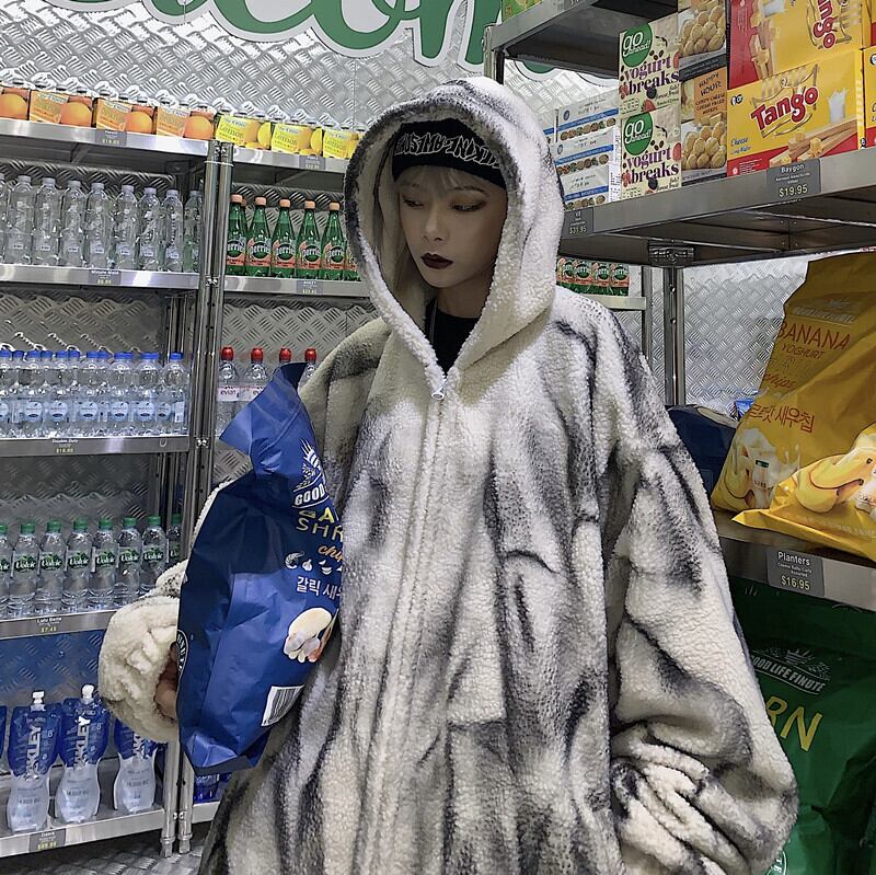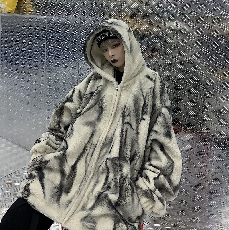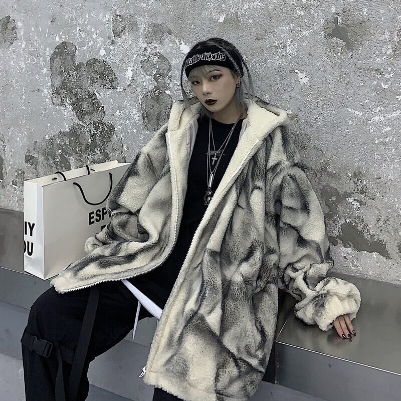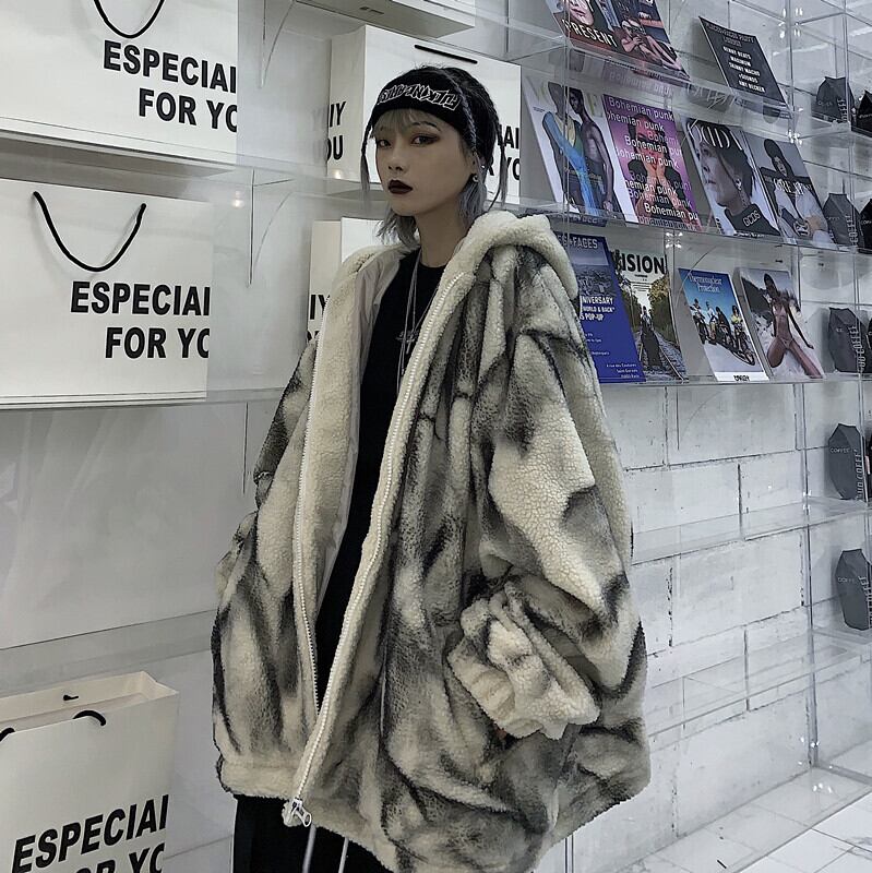 2020年秋冬新バージョンインレトロ絞り染めラムウールコート女性ルーズ厚手のフード付きコットンパッド入りの服 Brother_is_Style96920931180