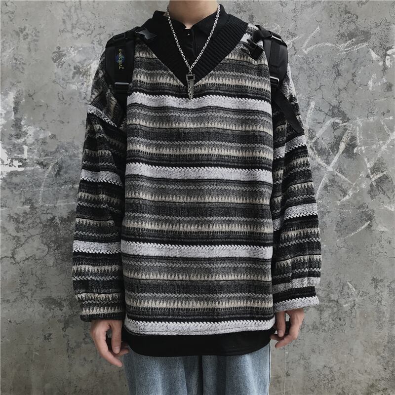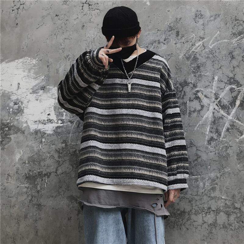 2020年秋新バージョンイン香港フレーバーレトロストライプウールVネックブラウスルーズプルオーバーセーターメンズ&レディース Brother_is_Style17738493055