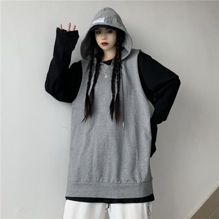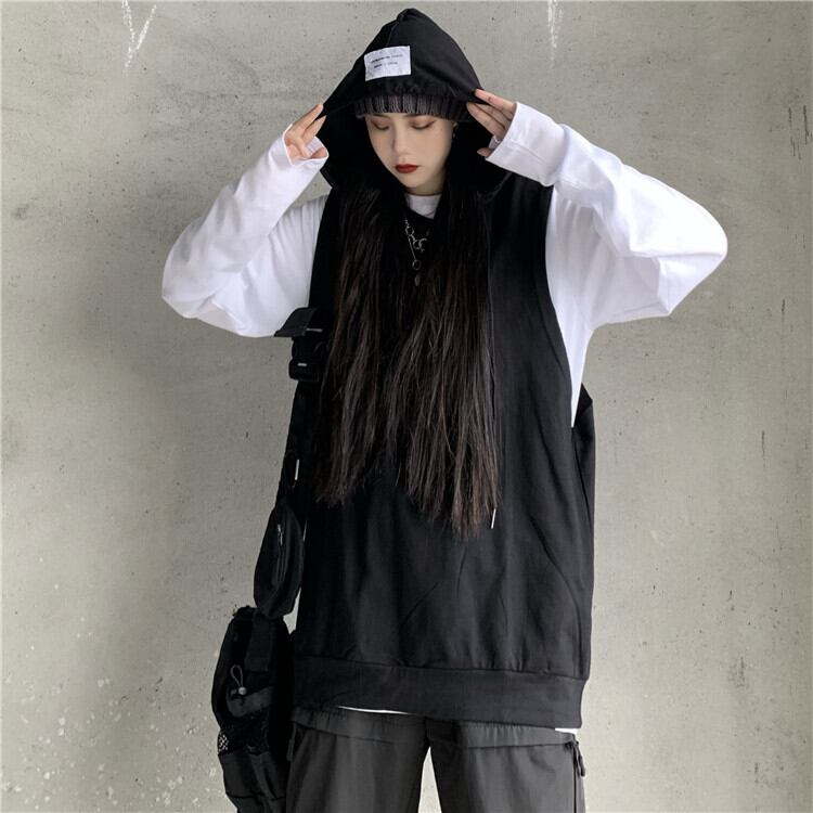 ベスト女性秋スタイルインストリートパーソナリティアウターウェアフード付きチョッキベストルーズノースリーブジャケットジャケットタイド Brother_is_Style22169010829