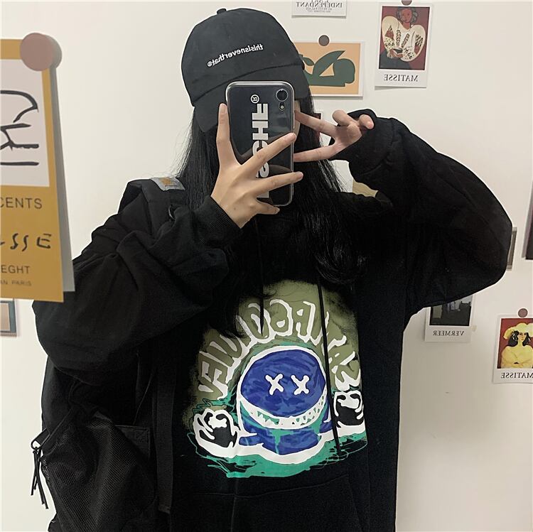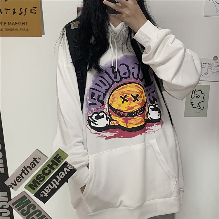 2020年秋冬の新バージョンのインダークフューネラルしかめっ面プリントルーズフードプラスベルベットセータージャケット女性トレンド Brother_is_Style65287364771