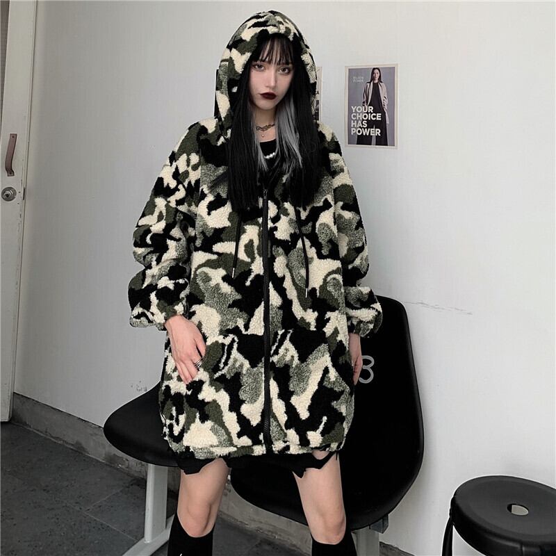 ジャケット女性2020年秋冬新バージョンのインフライドストリートワイルドルーズカモフラージュラムウールウォームセータートレンド Brother_is_Style94350381929