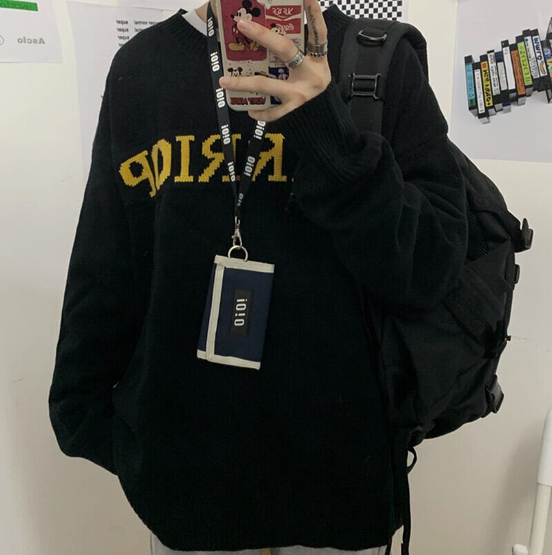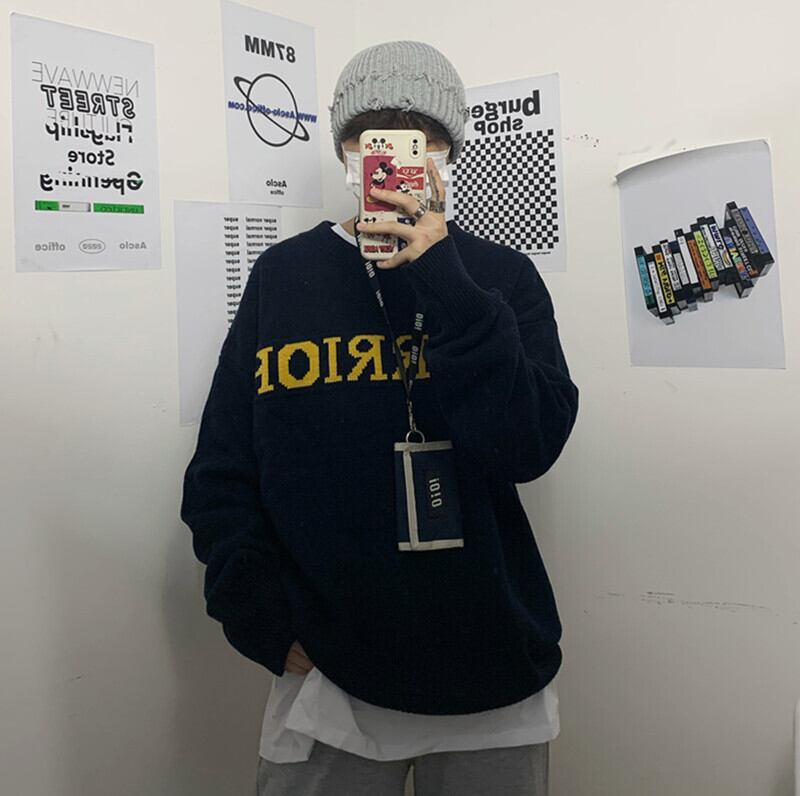 2020年秋新バージョンのインレトロレターブラックニットトップルーズアウターセーターメンズ&ウィメンズトレンド Brother_is_Style58716832930