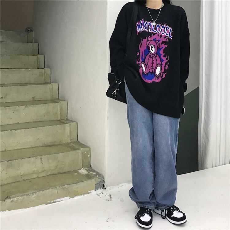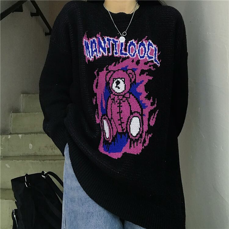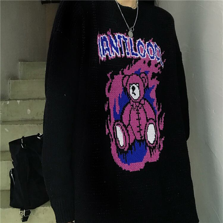 ニットセーター女性の2020年秋冬新バージョンins漫画クマラウンドネックプルオーバーセータールーズアウターウェアトップ Brother_is_Style18568610085