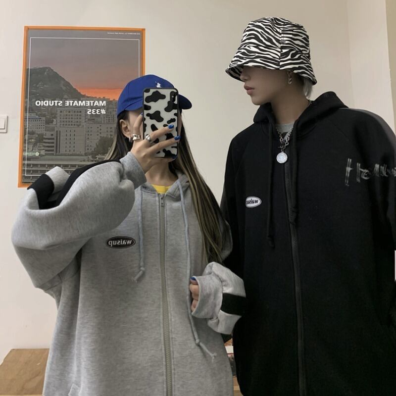 2020年秋冬新作ins原宿風カーディガンシャツルーズフードプラスフリースセーターカップルジャケットレディース Brother_is_Style45584231535