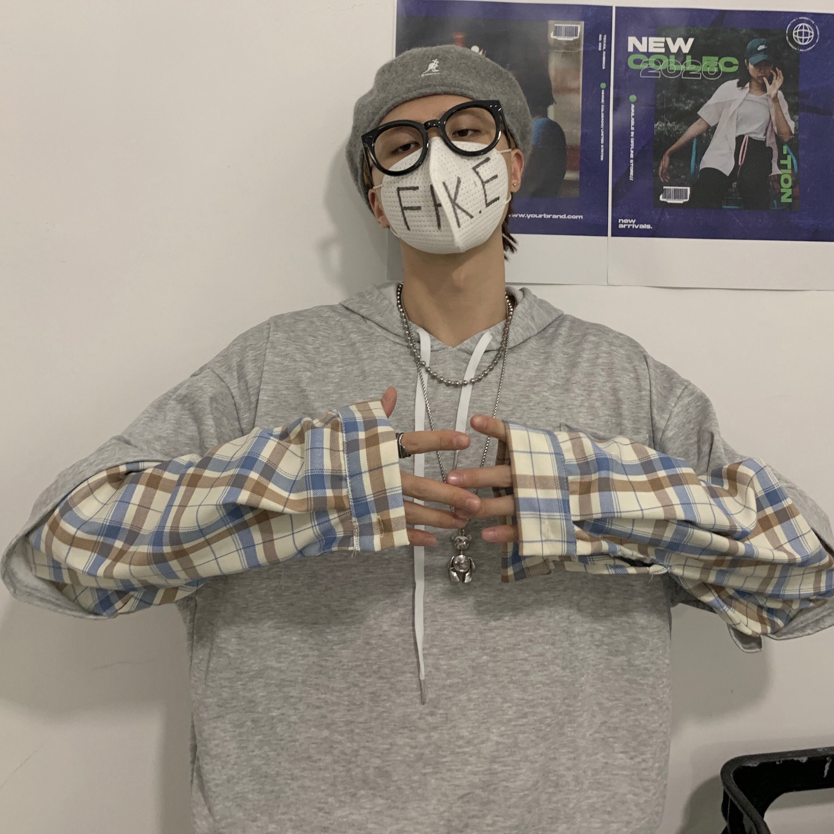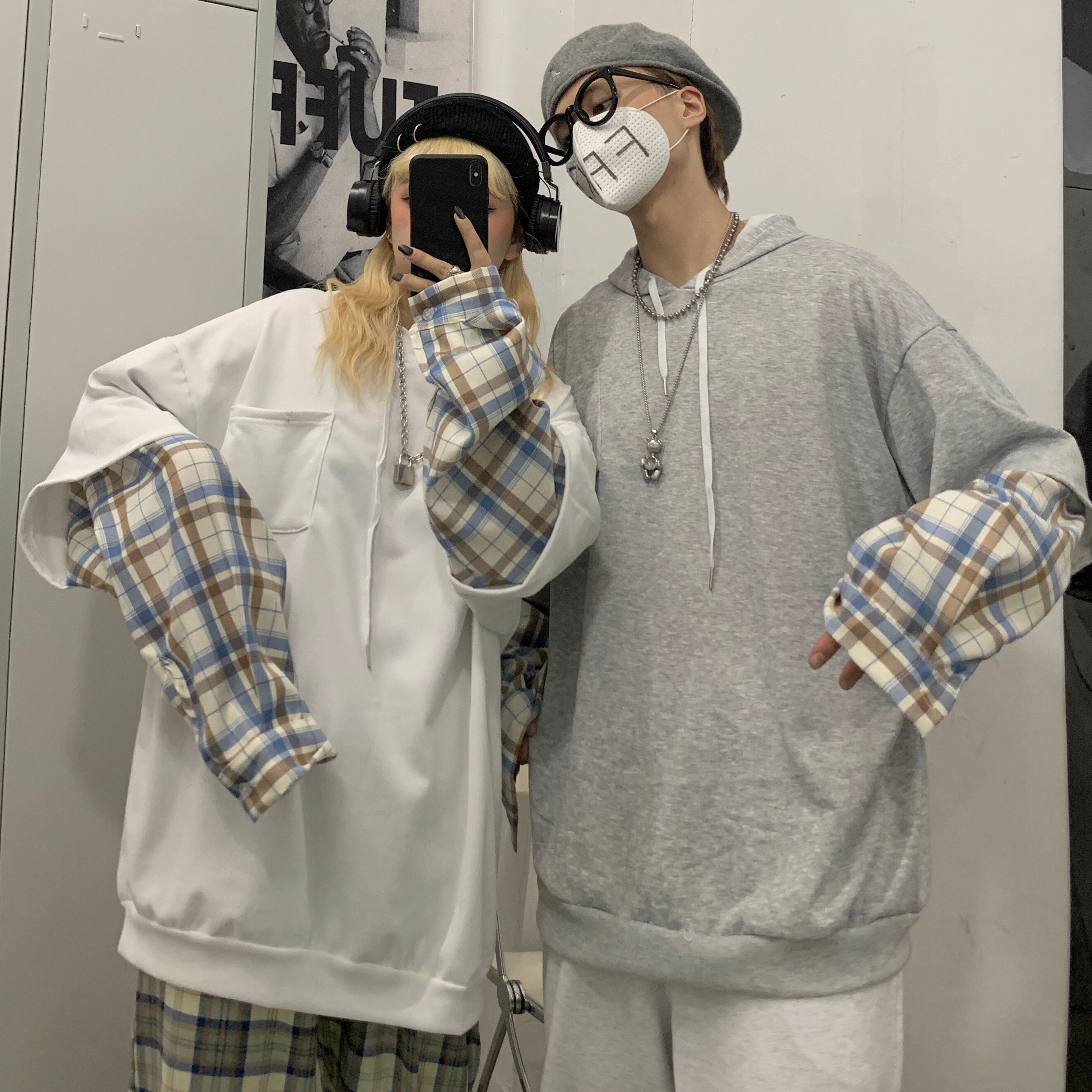 2020年の新しい秋のバージョンは、ルーズカップルのトップコートの偽のツーピースフード付きセーターの女性の潮流です Brother_is_Style1207002104
