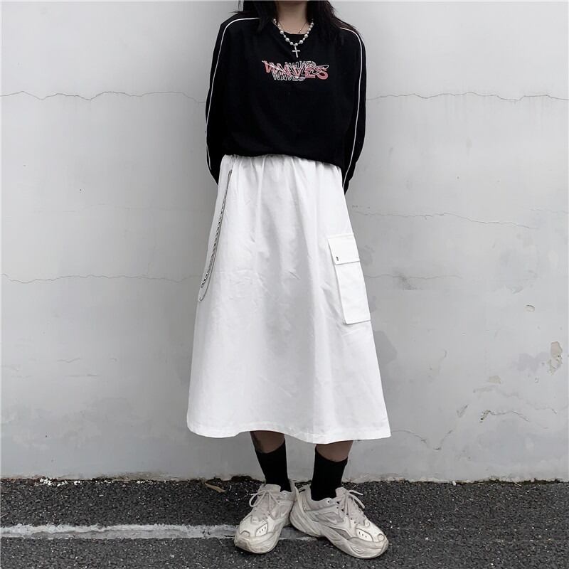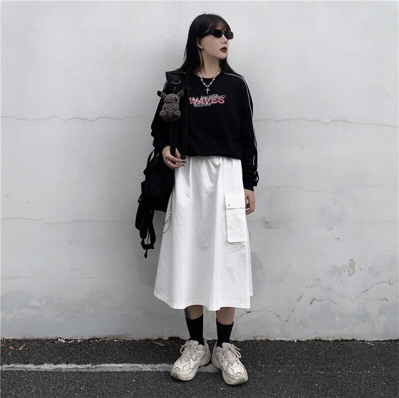 2020年秋新バージョンのins香港スタイルのスカート女性の黒いワークウェアスカートハイウエストの細いAラインスカートのトレンド Brother_is_Style60381796804