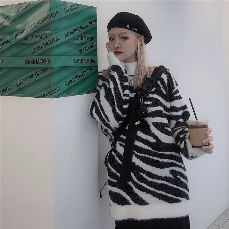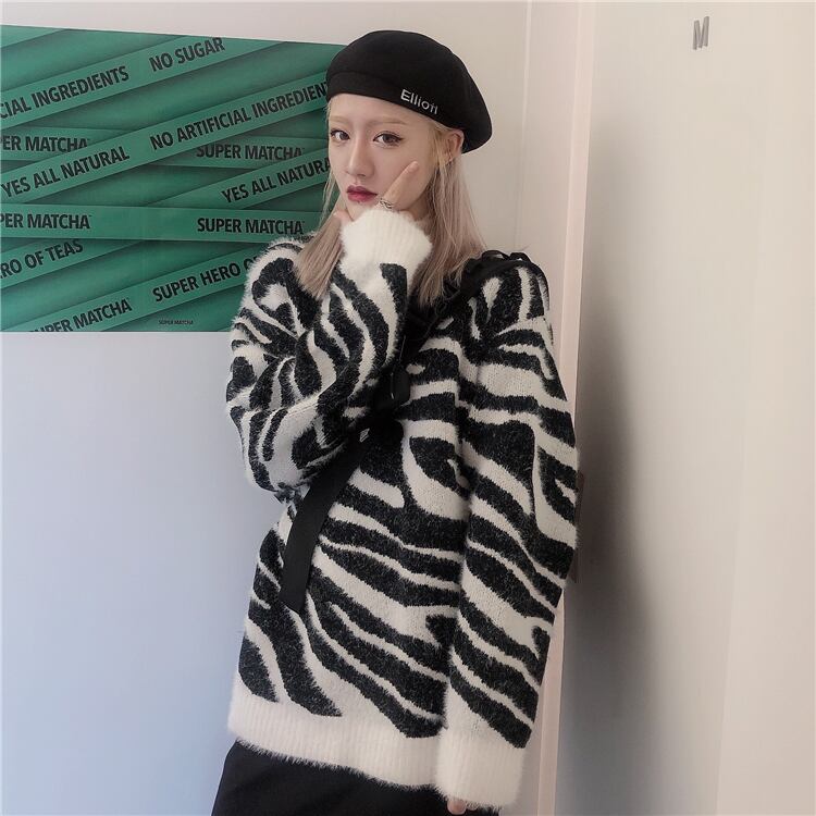 2020年秋新バージョンのinsレイジーゼブラパターンプルオーバーセータールーズアウターウェアニット長袖女性トレンド Brother_is_Style90632800538
