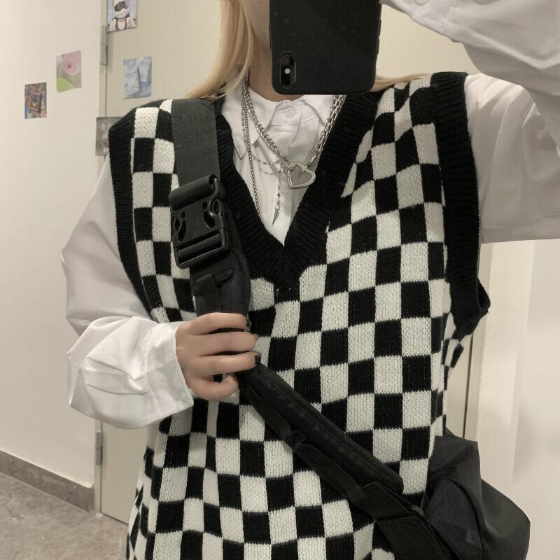 セーターレディース秋の服2020新バージョンインレトロチェック柄ベストベストルーズニットセータートレンド Brother_is_Style62210769089