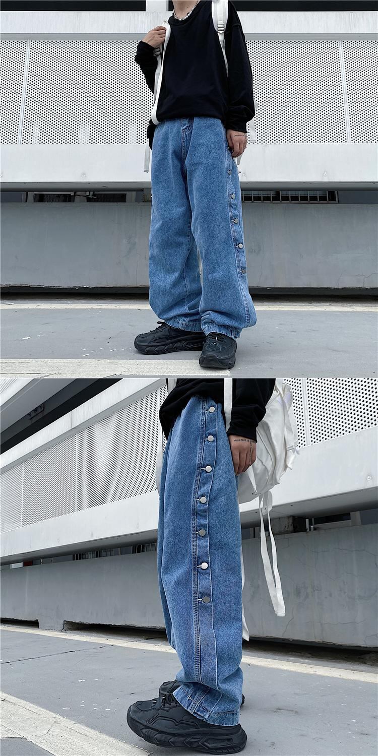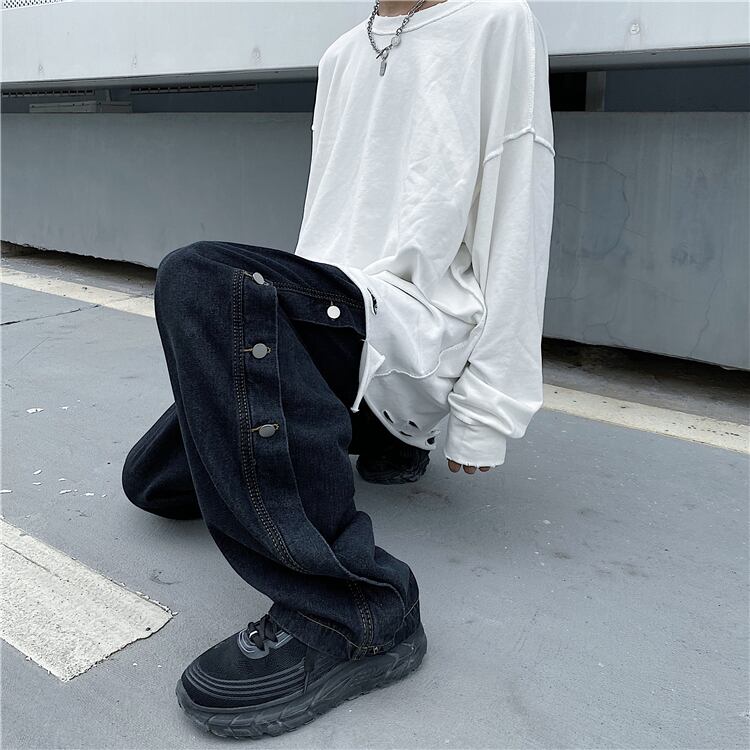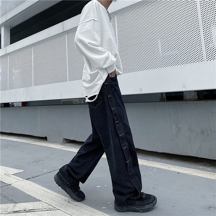 ジーンズレディース2020新バージョンインハイストリートサイドブレストワイドレッグパンツルーズハイウエストストレートレッグパンツトレンド Brother_is_Style9032138909