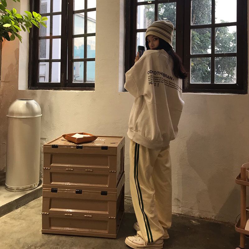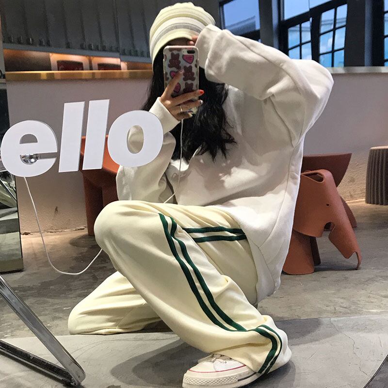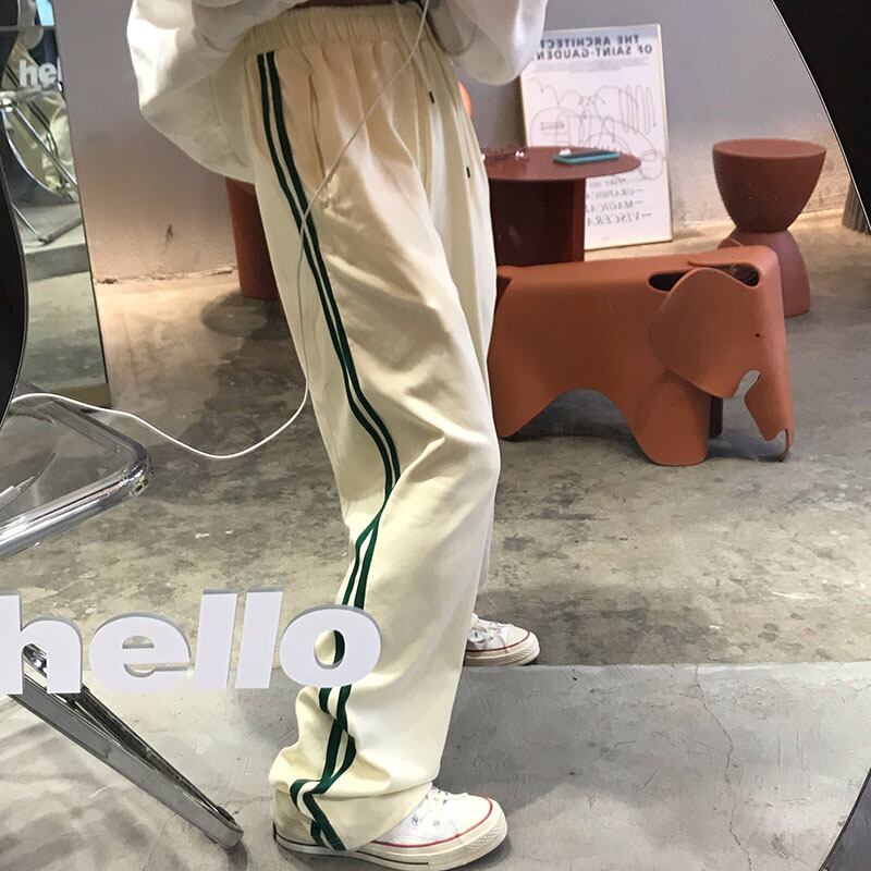 ホワイトパンツ女性イン風2020新しいルーズハイウエストストレートワイドレッグモップパンツスポーツカジュアルパンツトレンド Brother_is_Style71874897214