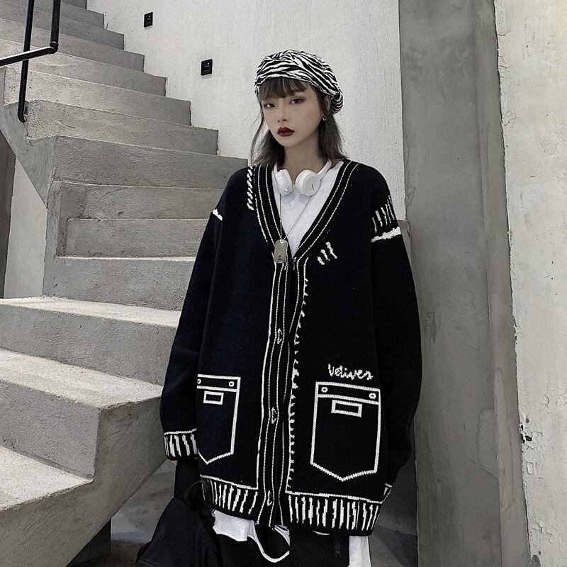 インレイジーウィンドネットレッドグラフィティニットトップルーズセータージャケット女性トレンドの2020年秋冬バージョン Brother_is_Style90610311073