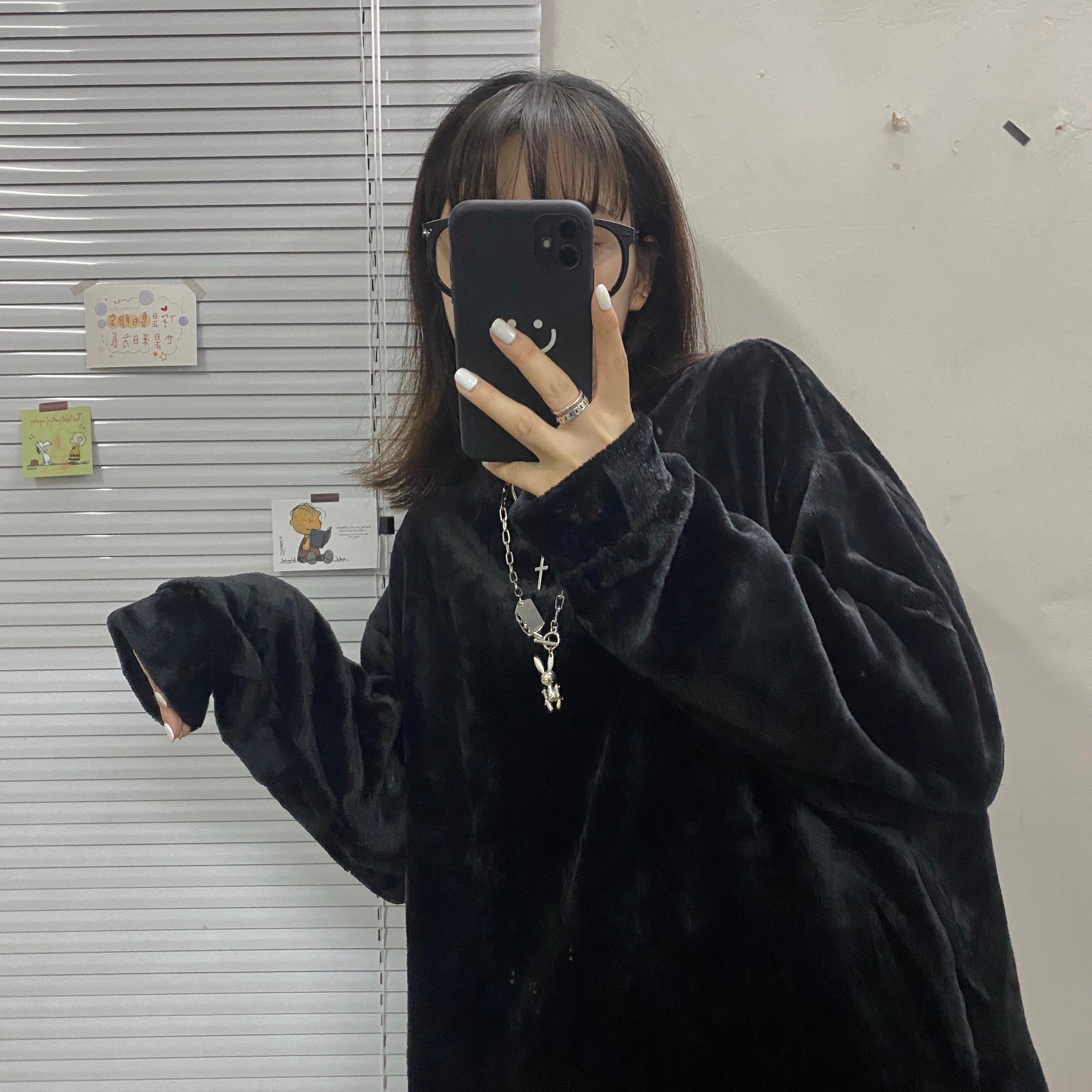 秋冬バージョンのイン原宿スタイル両面ベルベットラウンドネックセータールーズプラスベルベット増粘長袖アウタージャケット女性潮 Brother_is_Style29141095608
