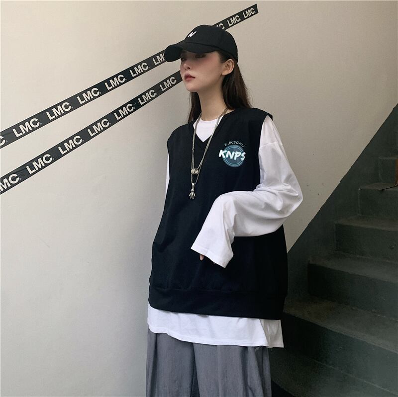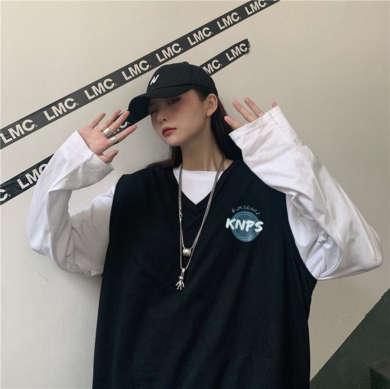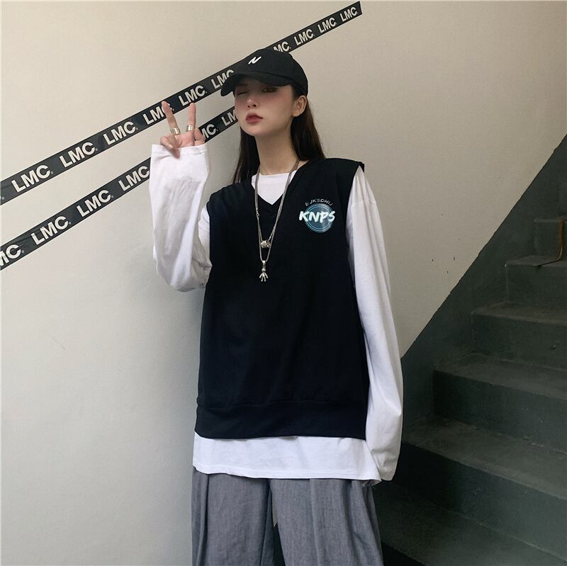 2020年秋新バージョンのインスルーアウターウェアVネックベストベスト+ホワイト長袖Tシャツツーピース女性トレンド Brother_is_Style97761840596