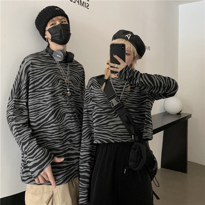2020年秋新作女性バージョンインレトロゼブラストライプショートトップルーズカップル長袖Tシャツトレンド Brother_is_Style53402491563