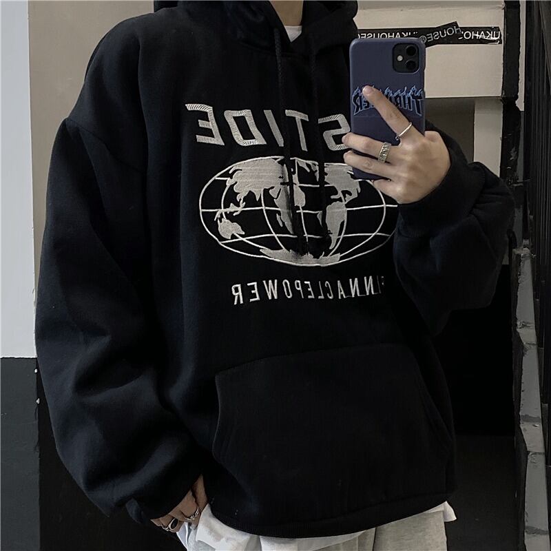 2020年の新しい秋と冬のイン刺繍とフリースのフード付きトップルーズブラックスタイルのセータージャケットの女性のトレンド Brother_is_Style71271237605