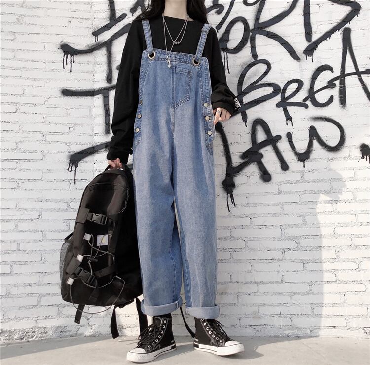 インレトロハイウエストジーンズビブパンツ女子学生の2020年新バージョンルーズストレートレッグワンピースパンツ Brother_is_Style41937051399