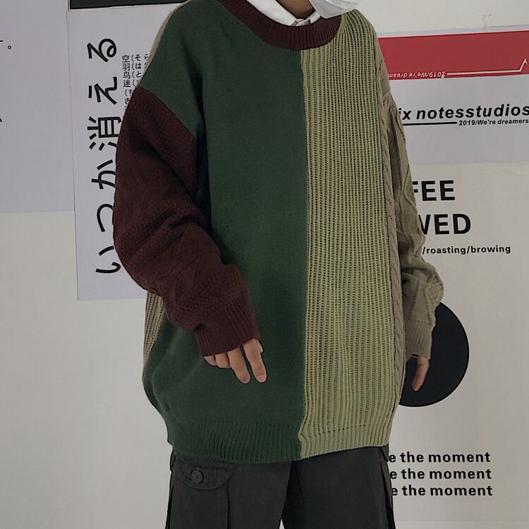 2020年秋新バージョンインレトロコントラストセーターセータールーズ長袖ステッチトップメンズ&レディーストレンド Brother_is_Style82783163430