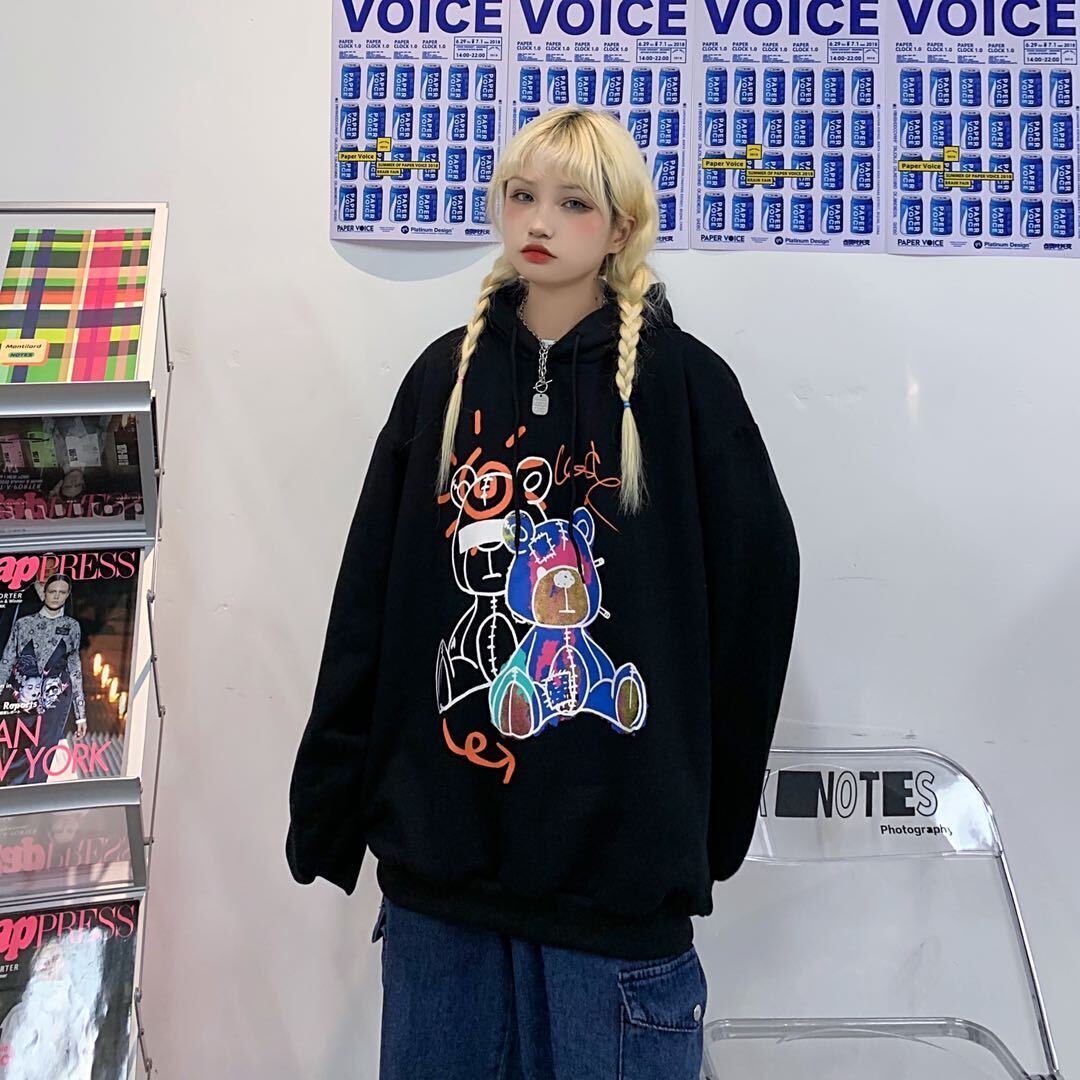 フード付きセーターレディース秋の服2020新バージョンinsルーズグラフィティベア学生長袖ジャケットジャケットトレンド Brother_is_Style37265003170