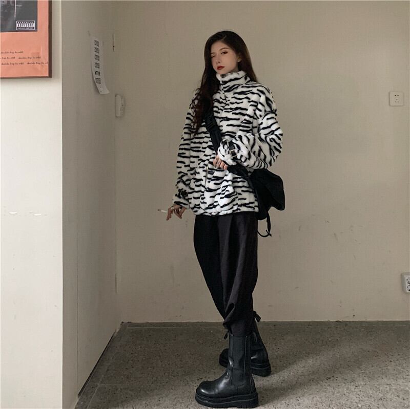 2020年秋冬新作イン原宿風ゼブラ柄ぬいぐるみトップルーズ厚手のパッド入りコート女性トレンド Brother_is_Style33601788628