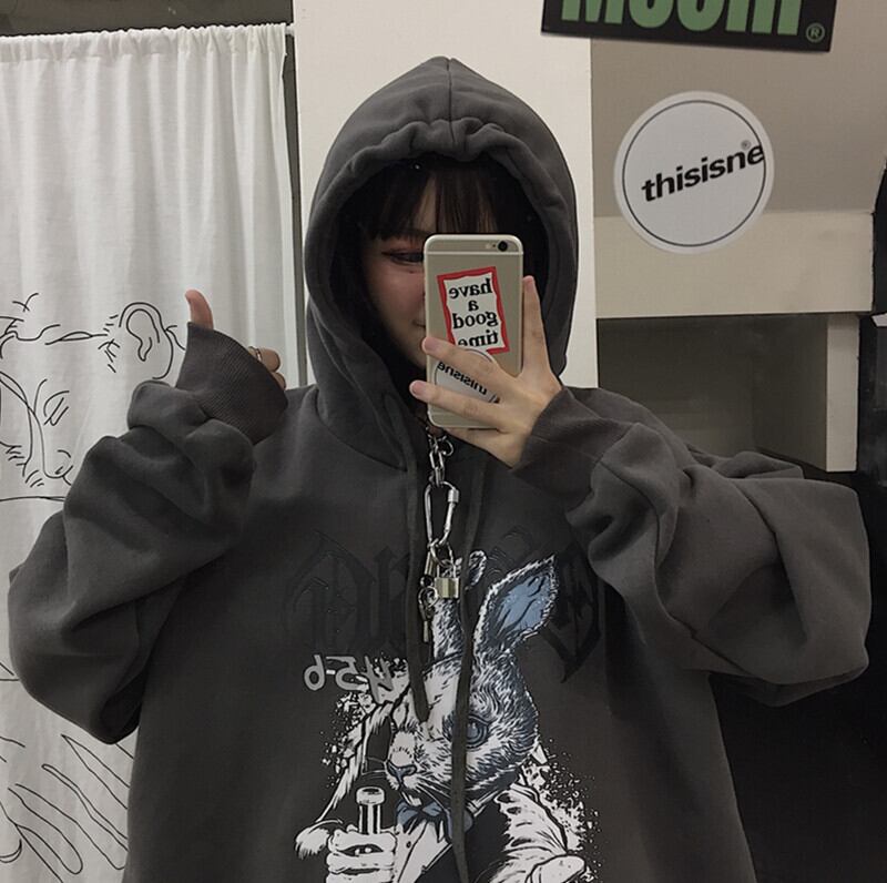 セーターの女性2020年秋冬新バージョンインヒップホップダークブラックフード付きトップルーズプラスベルベットジャケット愛好家のトレンド Brother_is_Style78682839432