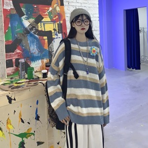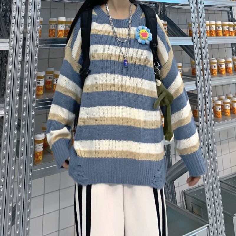 2020年秋新バージョンのインレイジーウィンドリッピングストライプセータートップルーズセーターコートトレンド Brother_is_Style40971983336