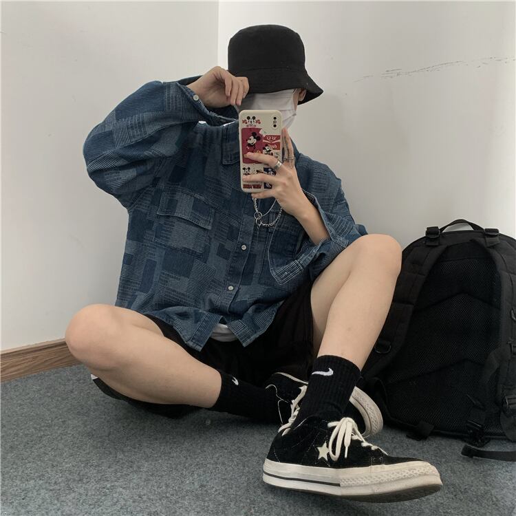 2020年秋新バージョンins香港スタイルレトロチェック柄ツーリングシャツBFルーズデニムジャケットメンズ&レディーストレンド Brother_is_Style79773432781