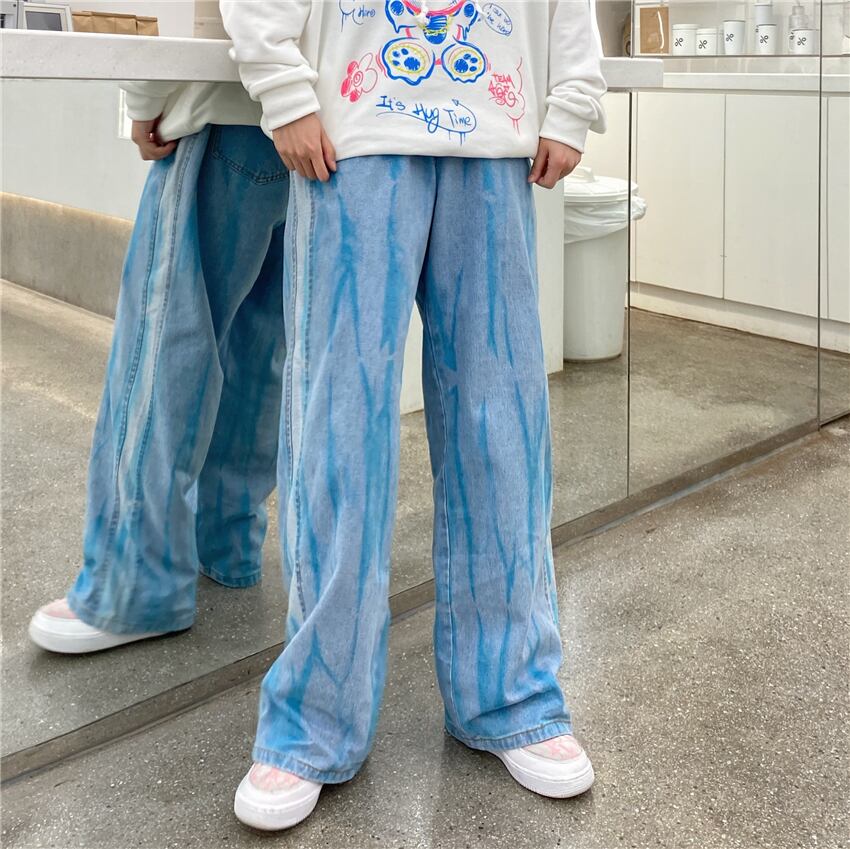 パンツ女性2020新バージョンインヒップホップ絞り染めジーンズルーズハイウエストオールドストレートワイドレッグパンツトレンド Brother_is_Style89655731945