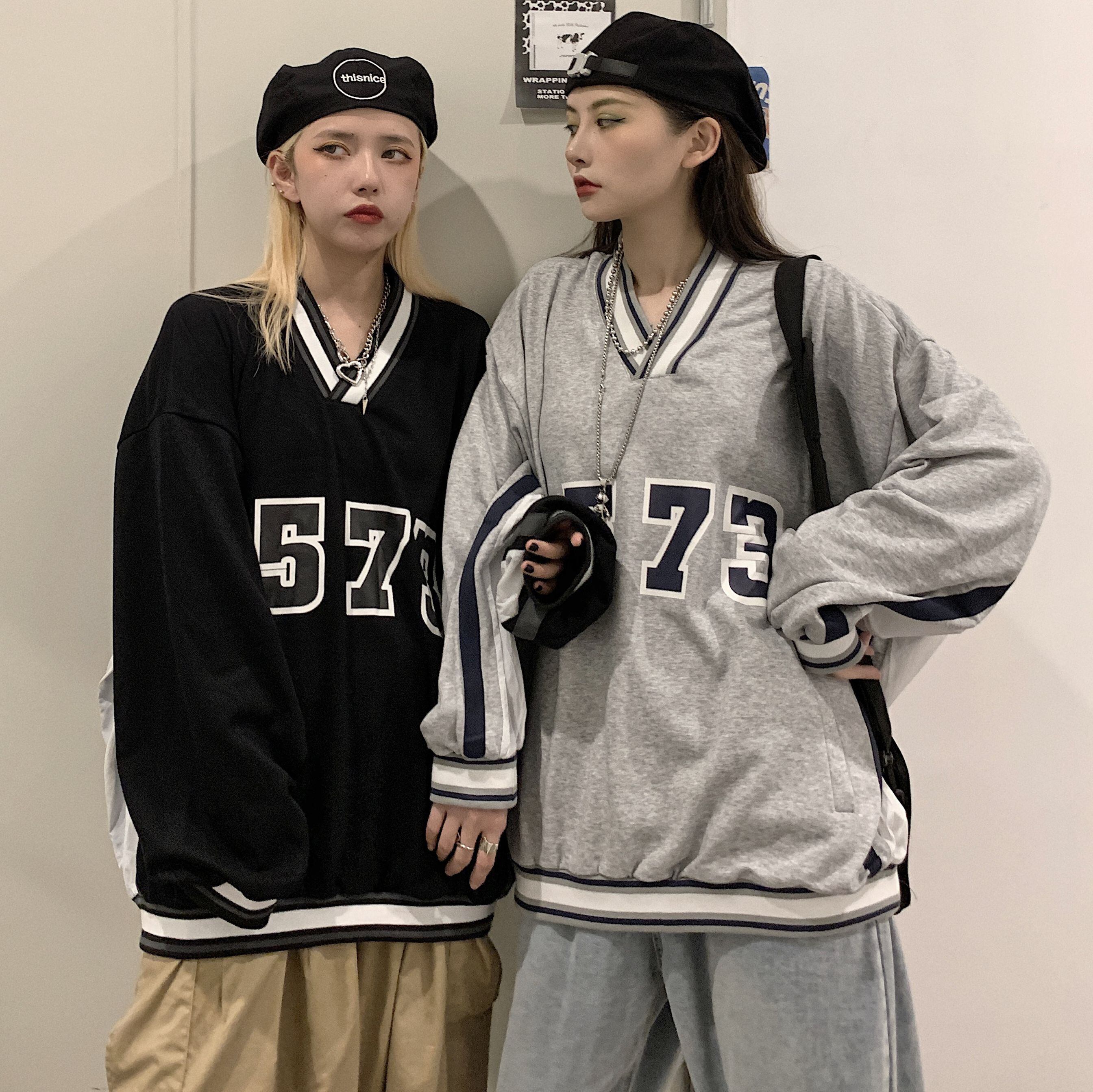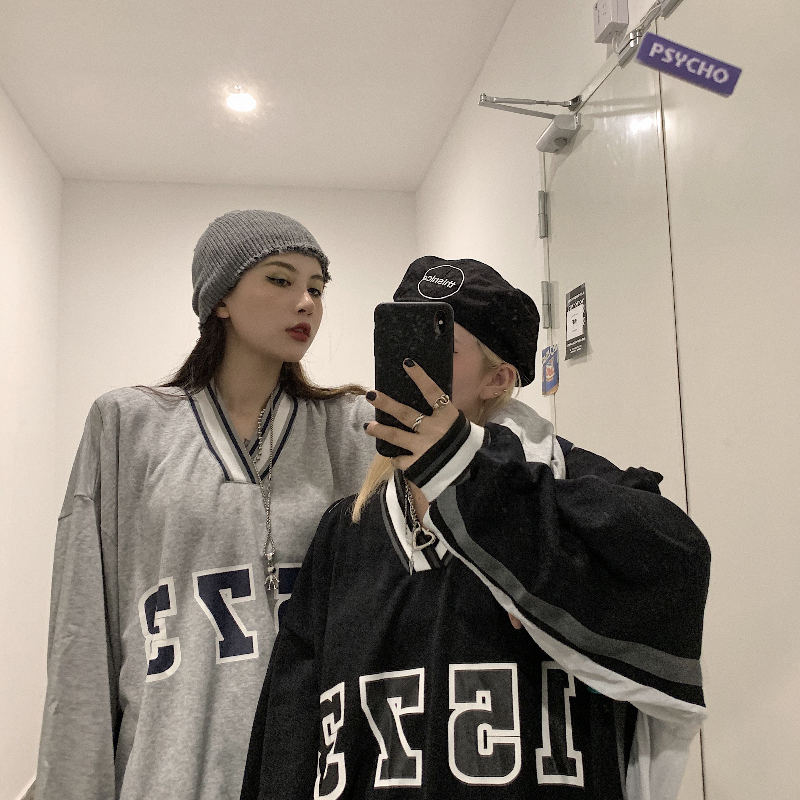 2020年秋新バージョンのインレトロヒットカラーVネック長袖シャツワイルドルーズプルオーバーセーター女性トレンド Brother_is_Style33347800546